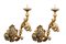 Coppia di grandi torcieri da parete Italia, fine del XVIII Sec. 150x100x65 cm. in legno dorato riccamente intagliato a motivi vegetali e volute, lievi difetti