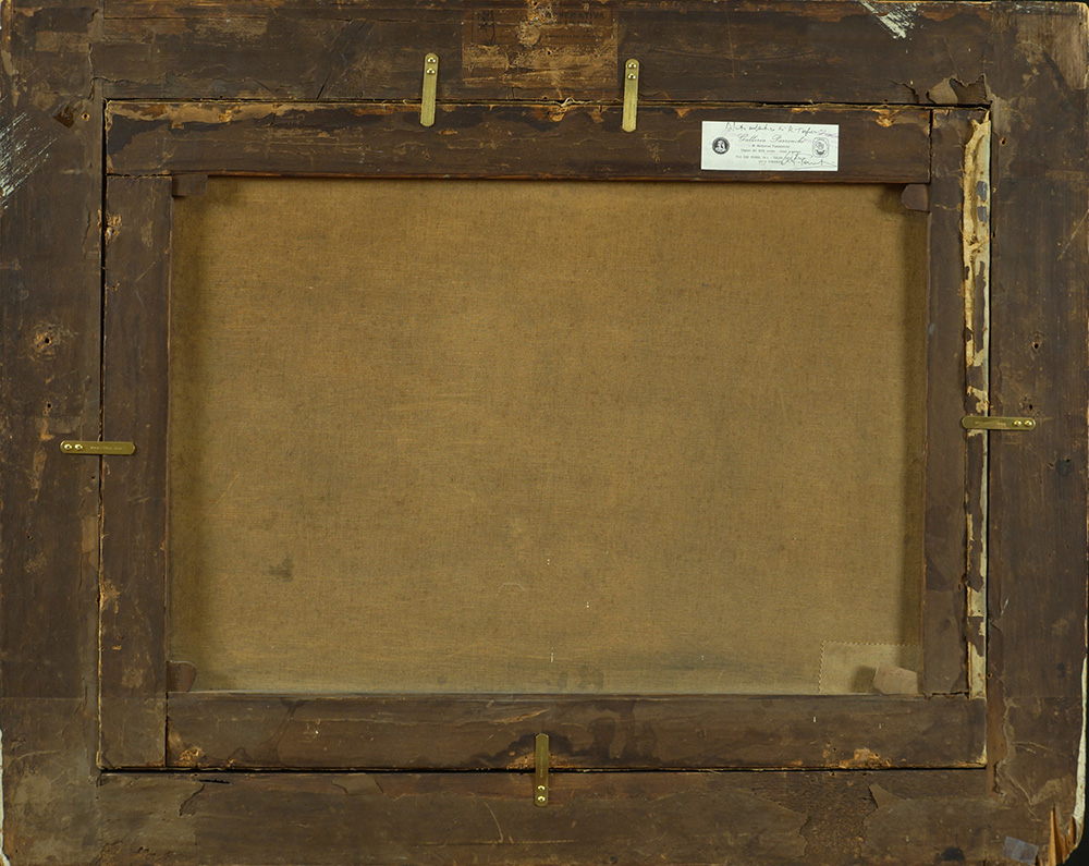 Condizioni: L'opera si presenta in prima tela con un restauro in basso a sinistra visibile anche dal retro dove è stata applicata una toppa di rinforzo,si segnalano altri piccoli restauri non significativi all'altezza del cielo.