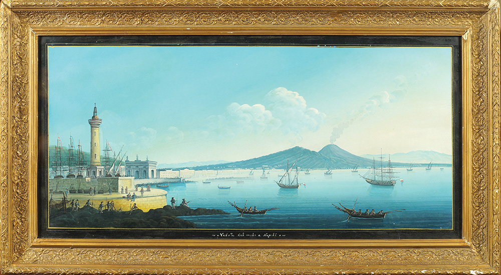 Scuola napoletana inizio XX Sec. 42x87 cm. "Veduta del molo a Napoli",...