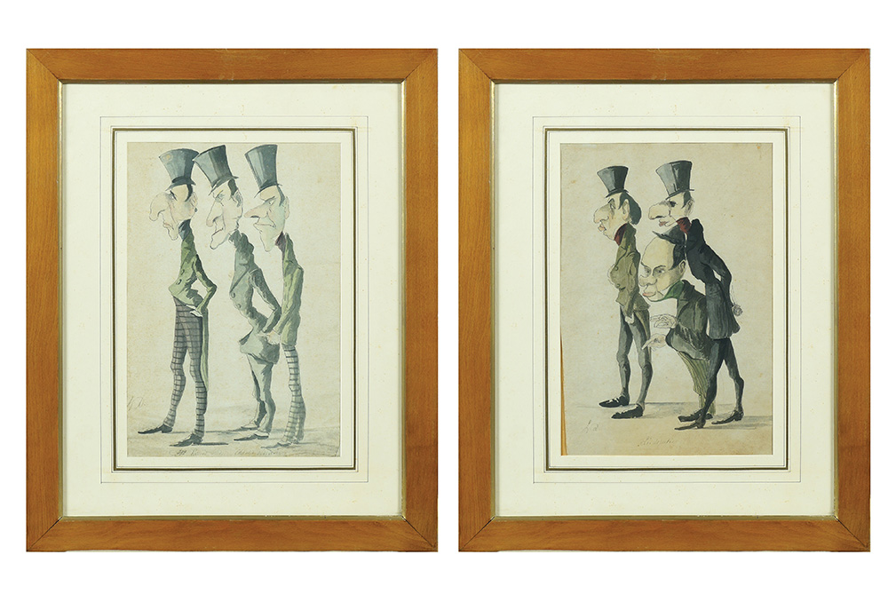 Lot 629 | Illustratore francese XIX Sec. 30x20 cm. "Caricatura", coppia di acquarelli...