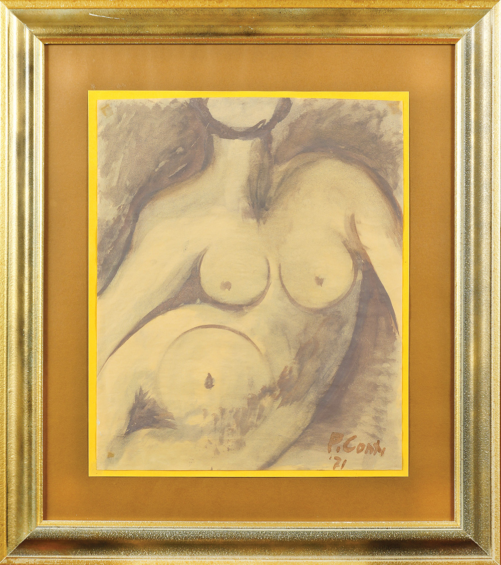 Primo Conti Firenze 1900 - Fiesole 1988 67x57 cm. "Nudo femminile", acquarello, firmato e datato 71 in basso a destra, entro cornice