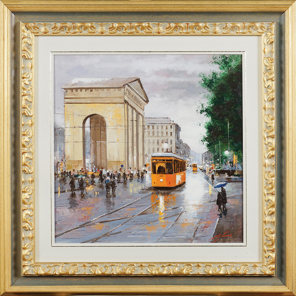 Lot 661 | Matteo Laganà Milano 1946 40x40 cm. "Tram in Piazza XXIV maggio", olio su...