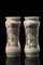 Coppia di albarelli policromi in maiolica con corpo a rocchetto alto e...