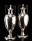 Coppia di vasi in argento a due manici, corpo ad urna liscio con cinture...
