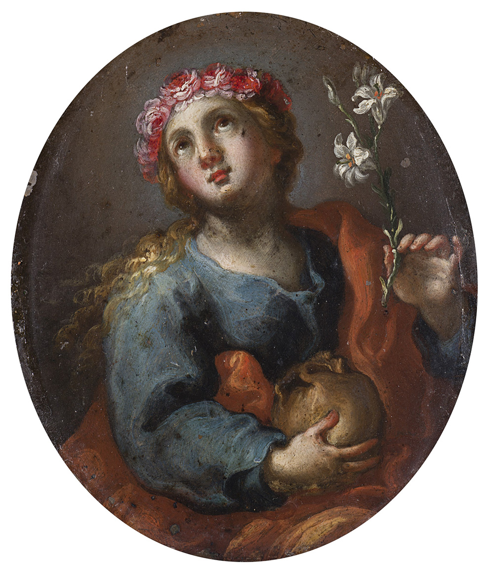 Maestro romano del secolo XVIII "Santa Rosalia" olio su rame (cm 13x10,5)In...