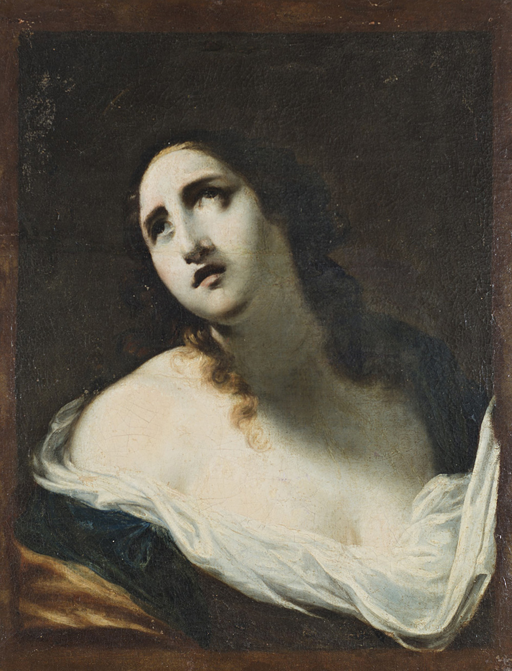 Scuola italiana del secolo XVII "Maddalena " olio su tela (cm 62x49). In cornice antica (mancanze alla cornice) 17th century Italian School "Mary Magdalene" oil on canvas (cm 62x49) Antique frame (losses to frame)