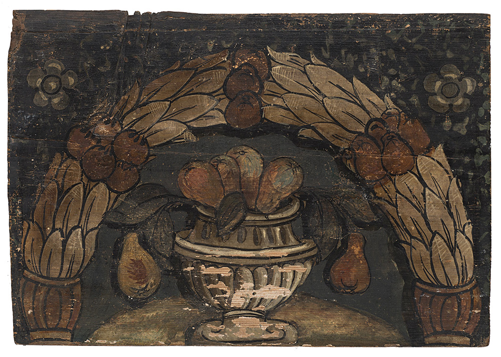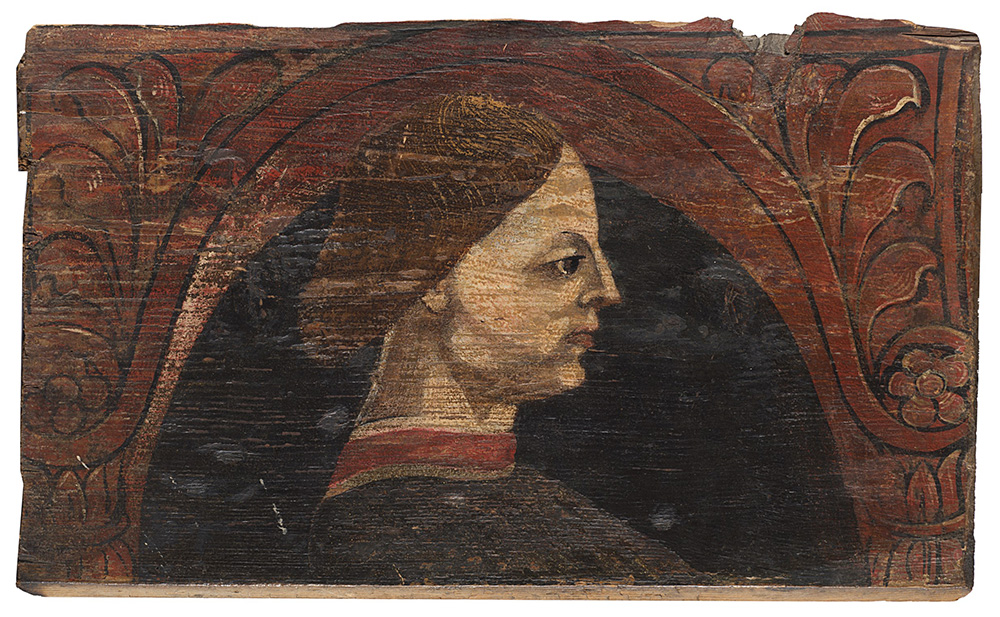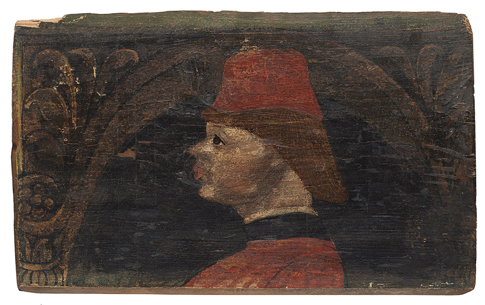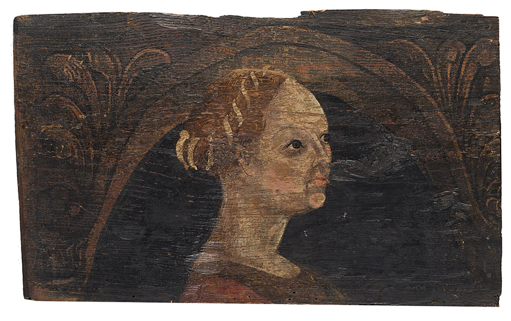 Otto antichi pannelli raffiguranti profili e decori, olio su tavola , misure diverse (difetti) Eight antique panels, oils on panel (defects)