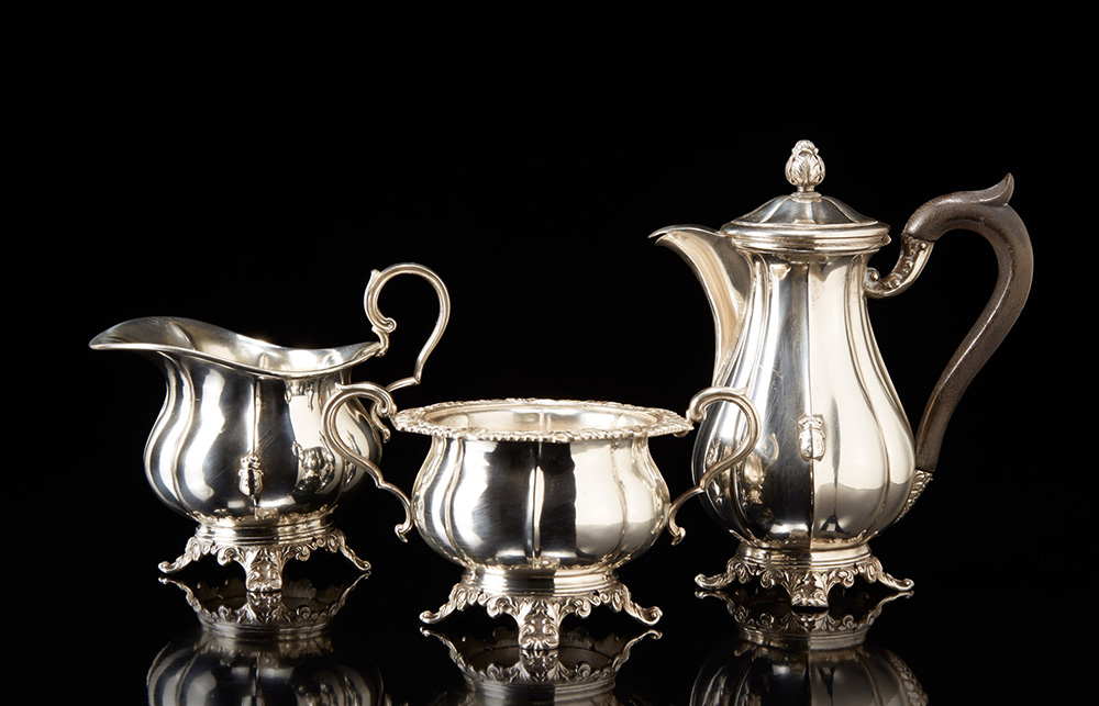 Servizio da caffË in argento composto da: caffettiera, lattiera e zuccheriera...