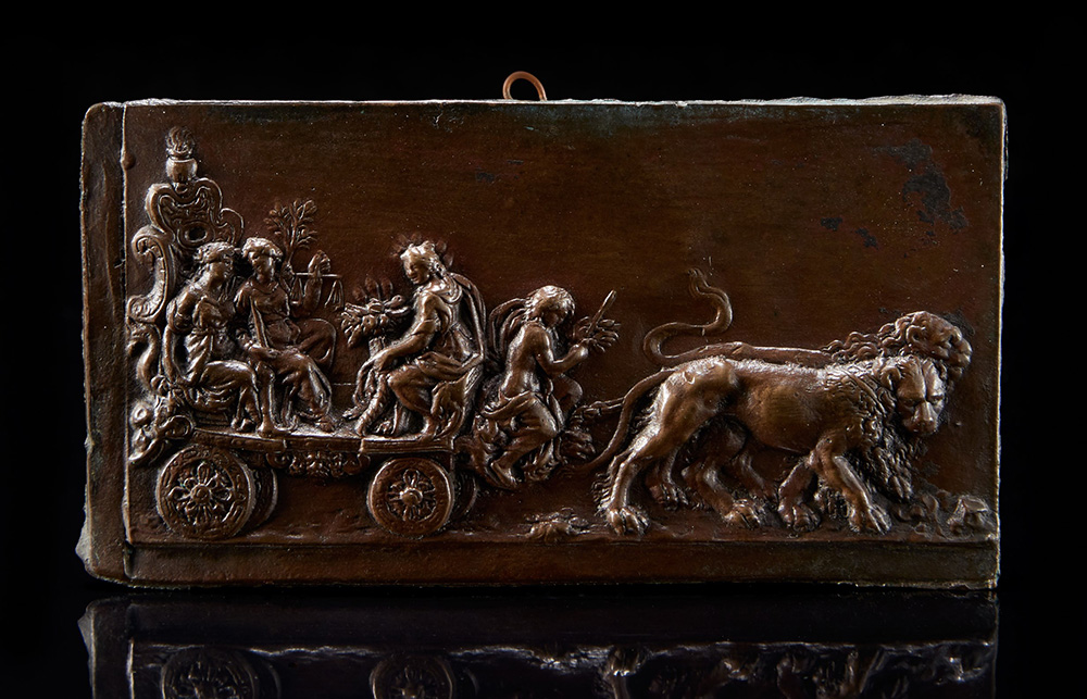 Arte della fine del sec. XVI-inizi del sec. XVII "Il trionfo della Giustizia" placca in bronzo (cm 5,4x13,1)(difetti) "The Triumph of Justice" bronze plaque. Late 16th/early 17th century (defects)