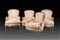 Gruppo di quattro poltrone in legno laccato con profili dorati. Cimasa e...