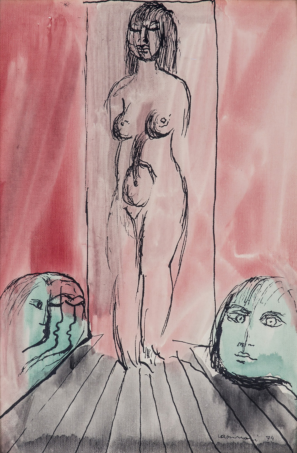 BRUNO CASSINARI (1912-1992) Figura e volti, 1974 Acquerello su carta...