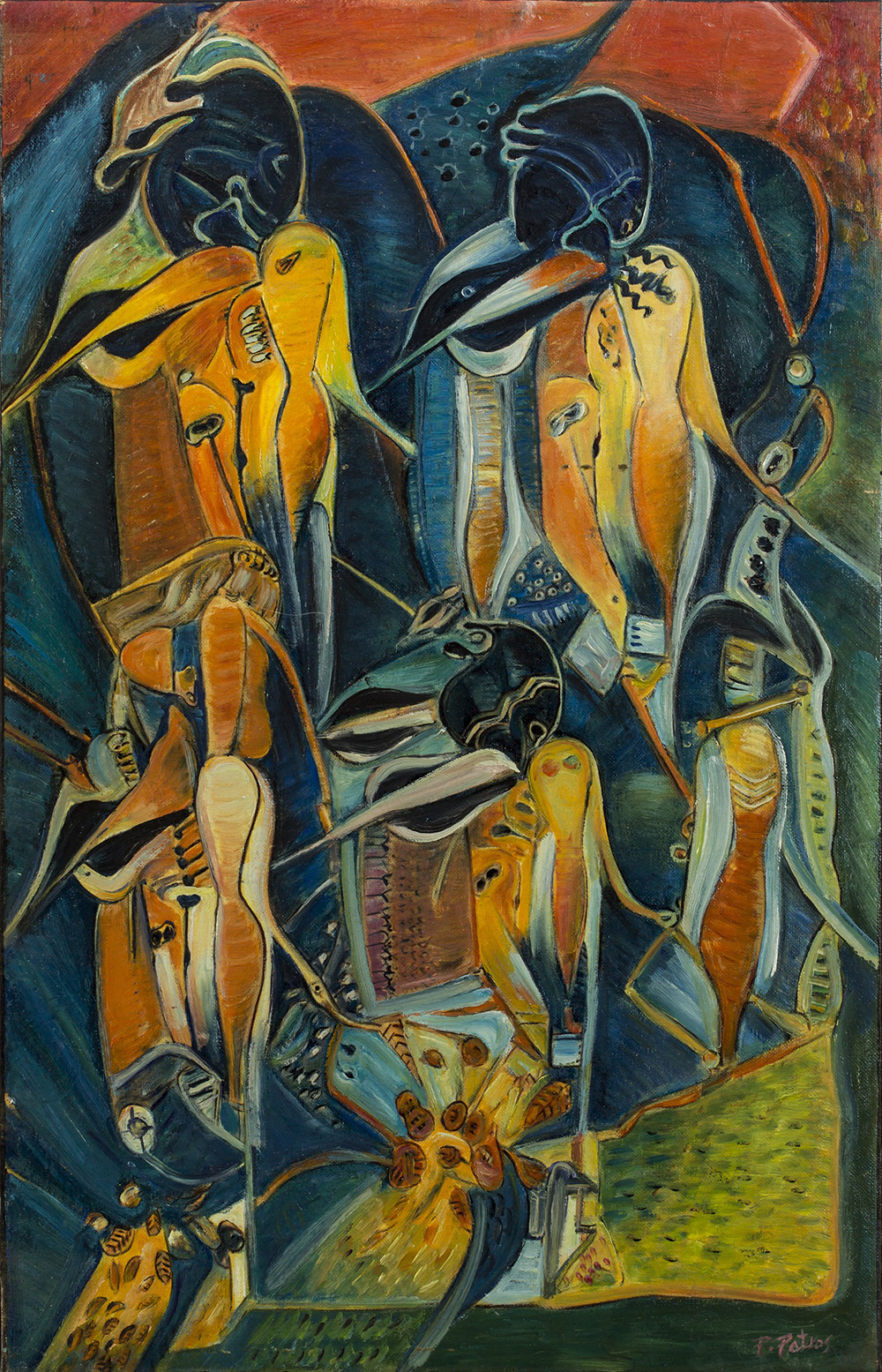 PETROS PAPAVASSILIOU (1928) Extraterresti, 1995 Olio su tela cm 71x45 Firma...