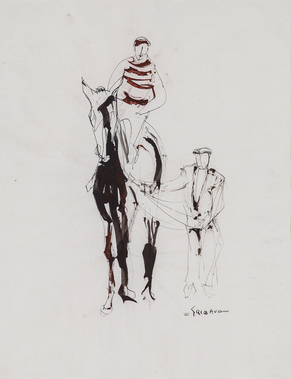 EZIO GRIBAUDO (1929) Alle case, 1965 Inchiostro e tempera su carta cm 28x22...