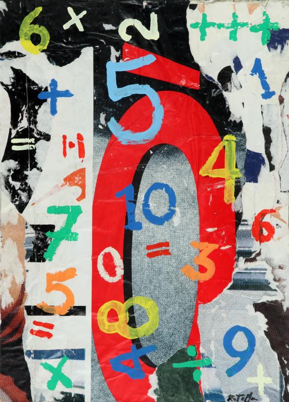 MIMMO ROTELLA (1918-2006) Numeri sparsi collage cm 70 x 50 firmato in basso a destra e firmato, datato e numerato sul retro provenienza: Galleria Soave Alessandria