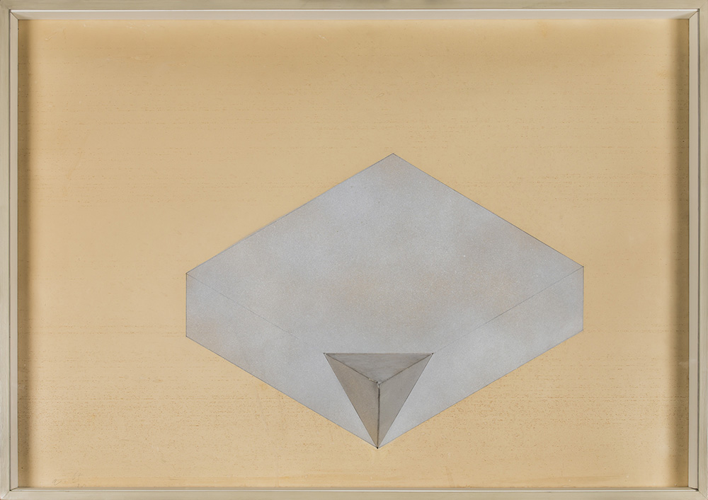 Tecnica mista su cartoncino e cartone sagomato tridimensionale applicati su tavola, entro scatola originale