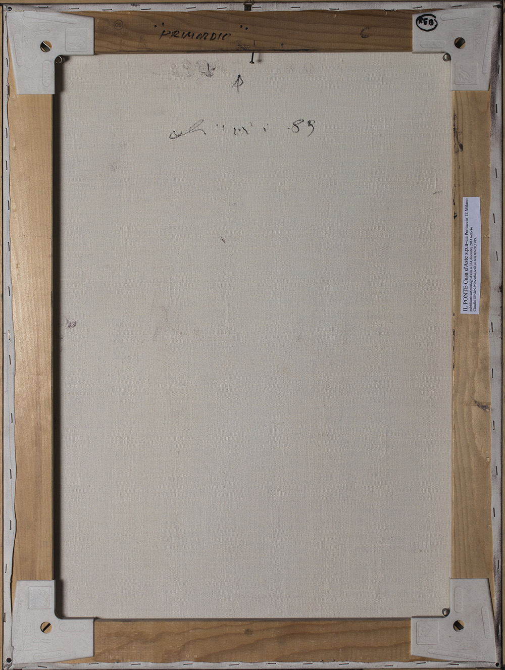 CLAUDIO OLIVIERI (1934) Primordio, 1989 Acrilici su tela cm 80x60 Firma,...