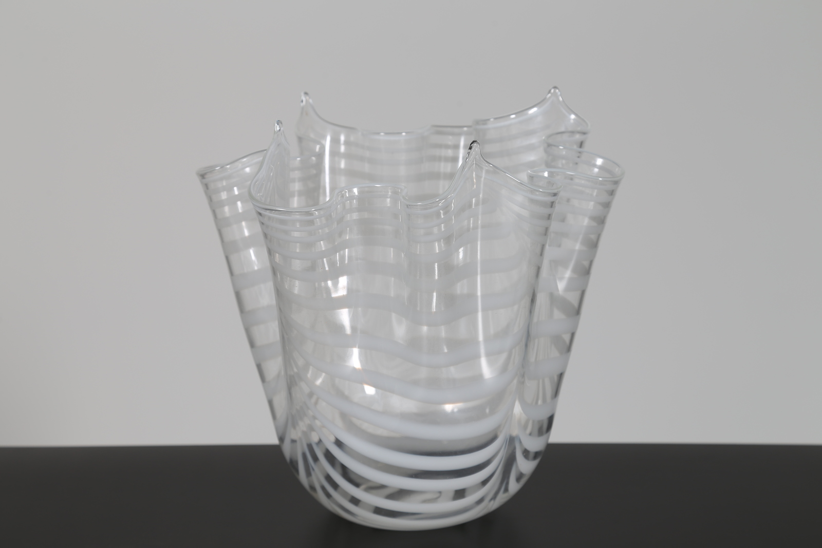 CENEDESE GINO Vaso fazzoletto con inclusioni bianche, Murano anni 70. -. Cm 30,00 x 28,00 x 30,00.