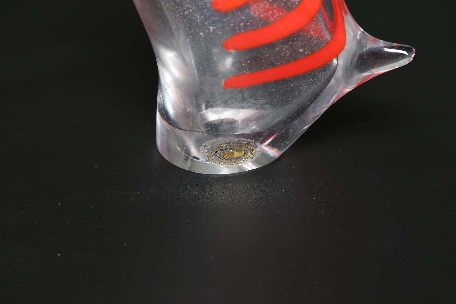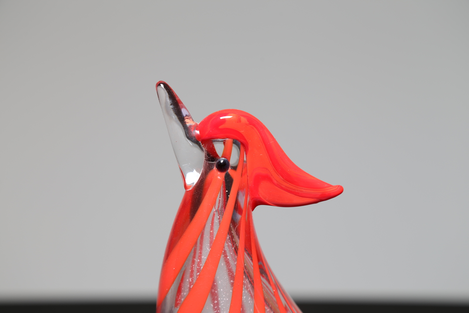 FERRO E LAZZARINI Galletto in vetro e pasta vitrea corallo, Murano anni 60. -. Cm 12,00 x 26,00 x 7,50. Etichetta presente