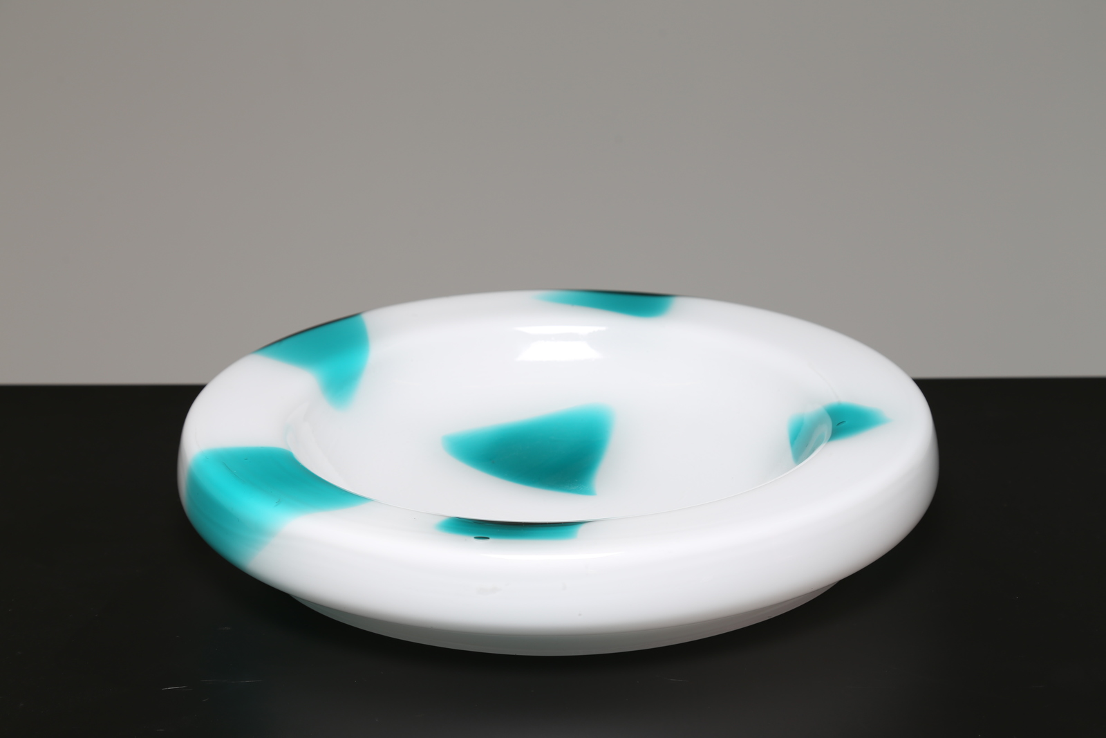 ZUCCHERI TONI (1937 - 2008) Centrotavola in vetro lattimo con triangoli verdemare, Murano anni 60. -. Cm 36,00 x 6,00.