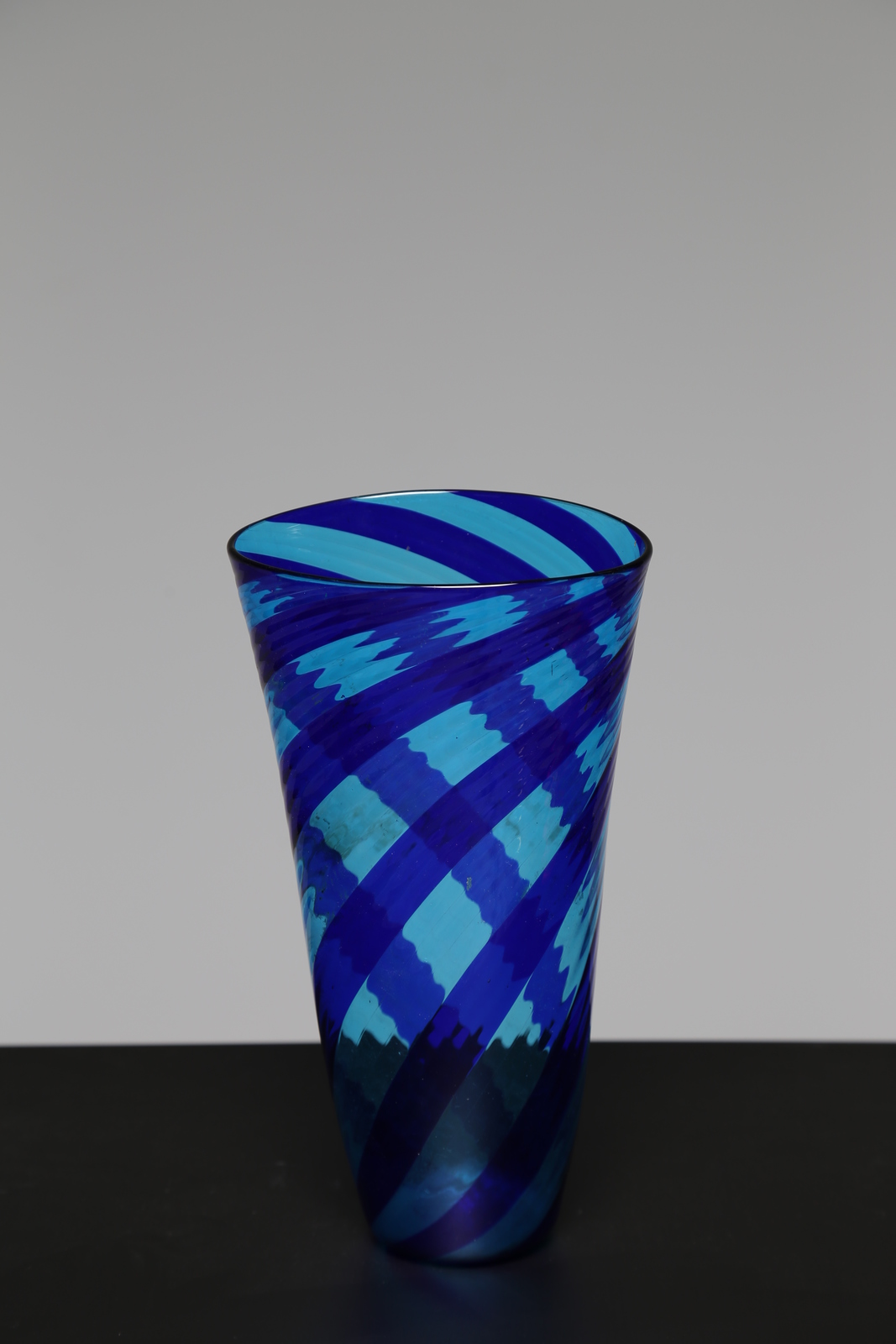 Lot 35 | RAFAEL EROS Vaso a canne blu lavorazione a spirale, per Millerighe Murano...