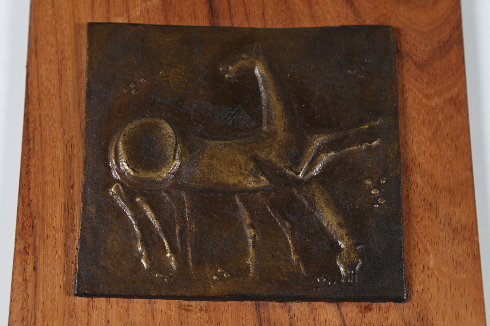 PINTON MARIO Cavalli, fusione in bronzo su legno, Padova anni 60 . -. Cm 19,50 x 21,00 x 1,50. Etichetta sul retro