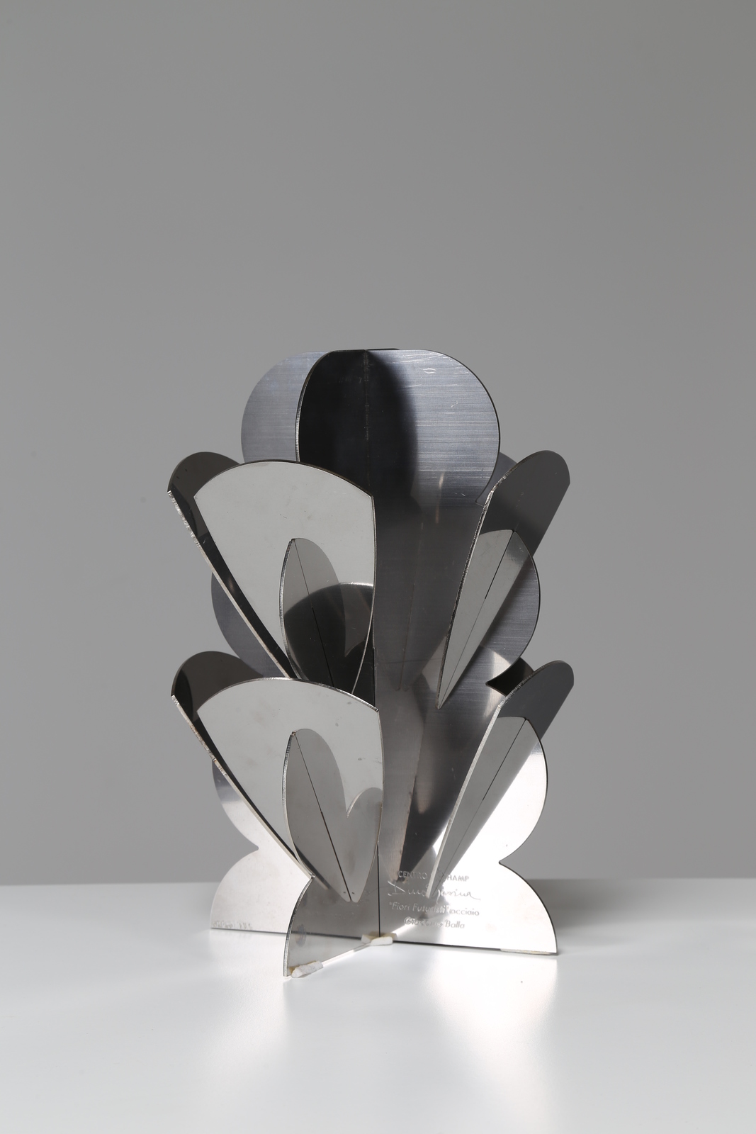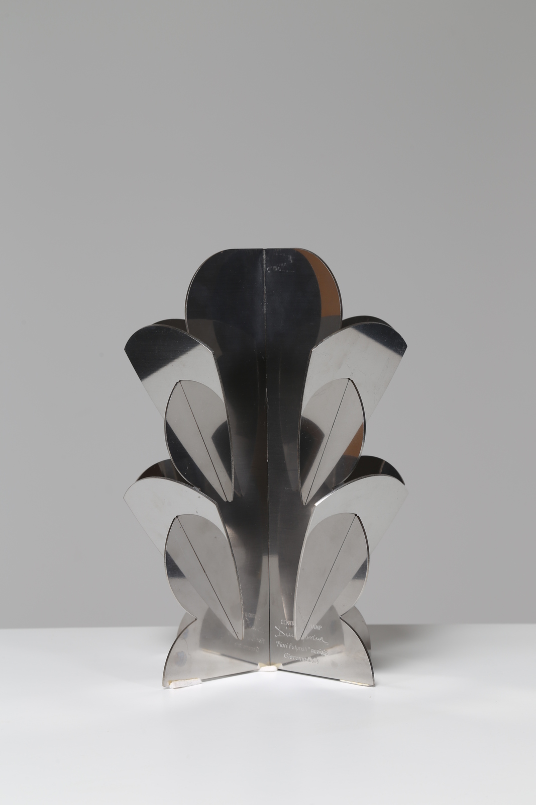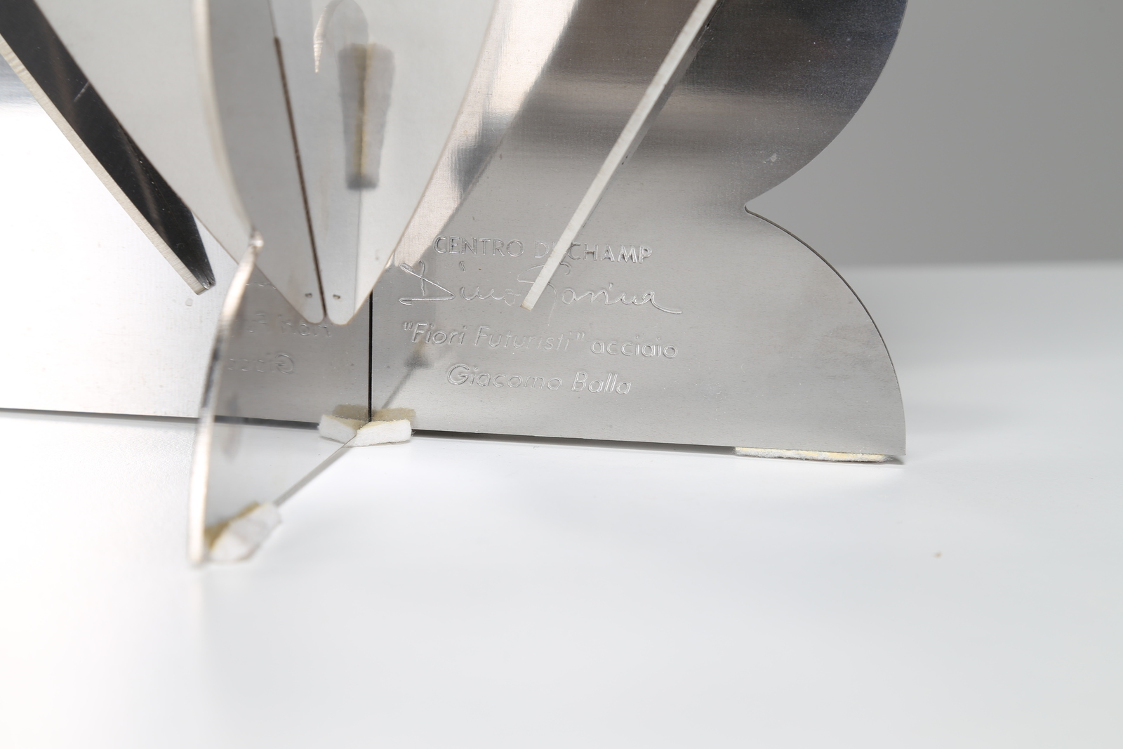 GAVINA DINO Scultura, in acciaio “Fiori futuristi” omaggio a Giacomo Balla, Centro Duchamp anni 80 . -. Cm 18,00 x 29,00 x 18,00. Data e firma incise alla base
