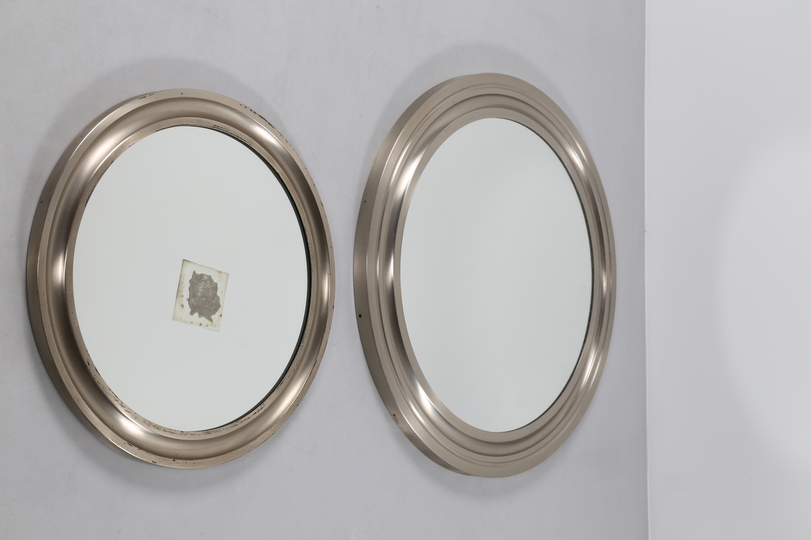 MAZZA SERGIO (n. 1931) Coppia di specchi in alluminio spazzolato e vetro specchio, mod. Narciso, per Artemide, anni 60. -. Cm 84,00 x 84,00 x 3,50. Dimensione secondo specchio: 62x62x3