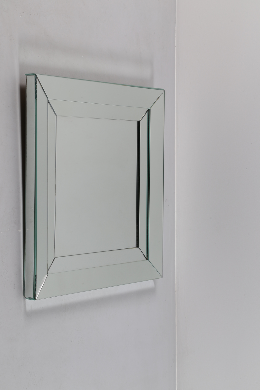 CRISTAL ART TORINO Specchio in vetro, anni 60. Legno e vetro. Cm 67,00 x 67,00 x 4,00.