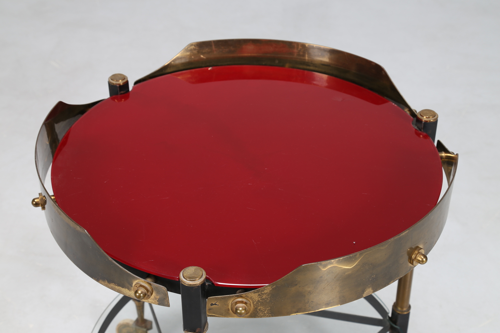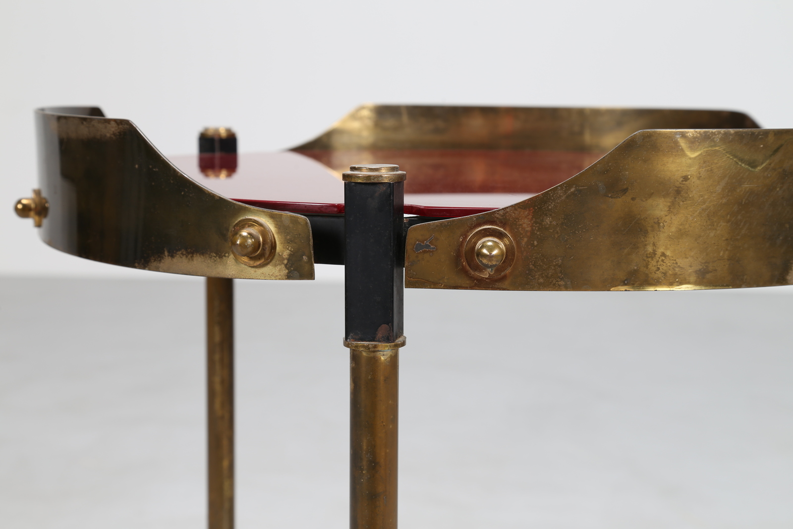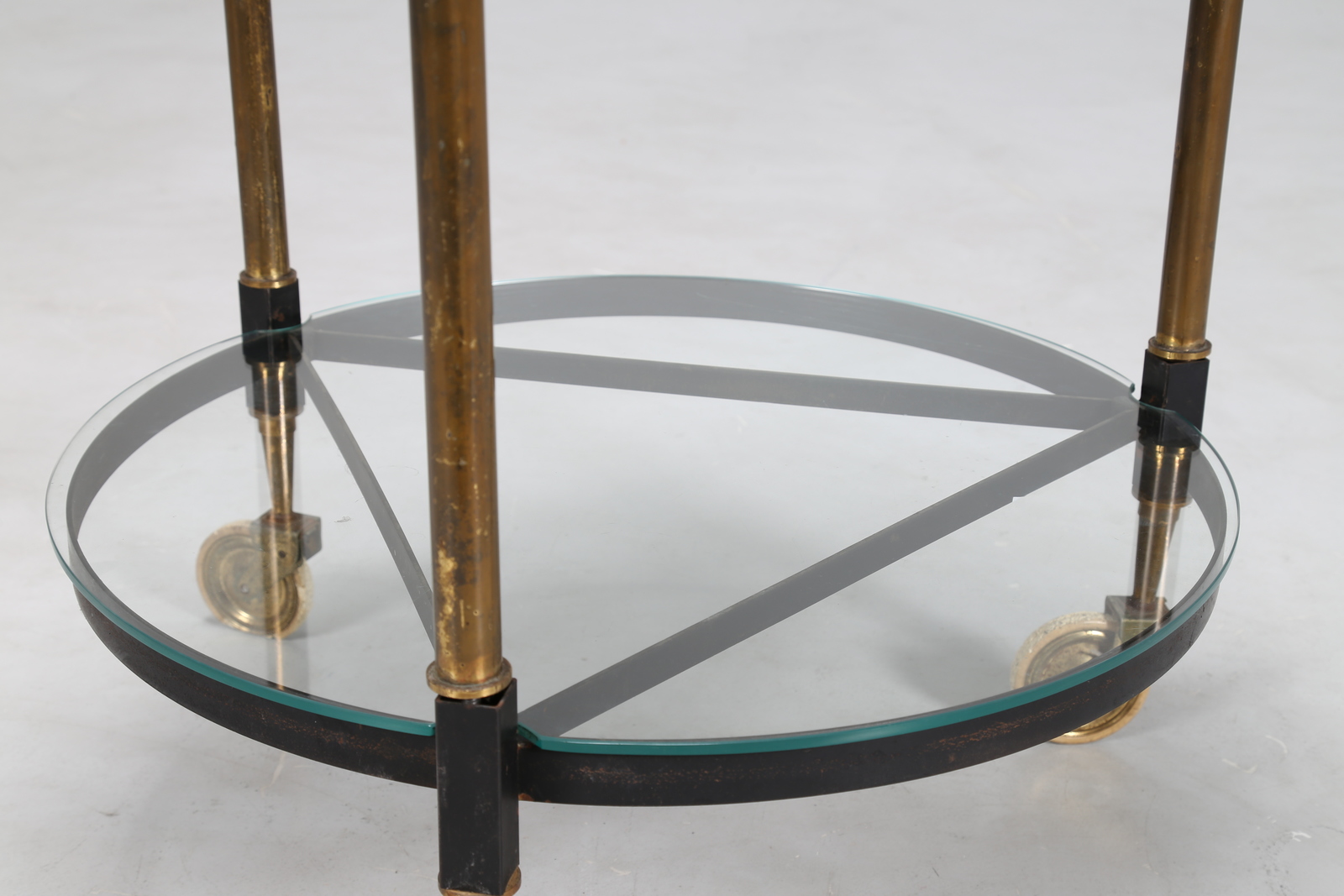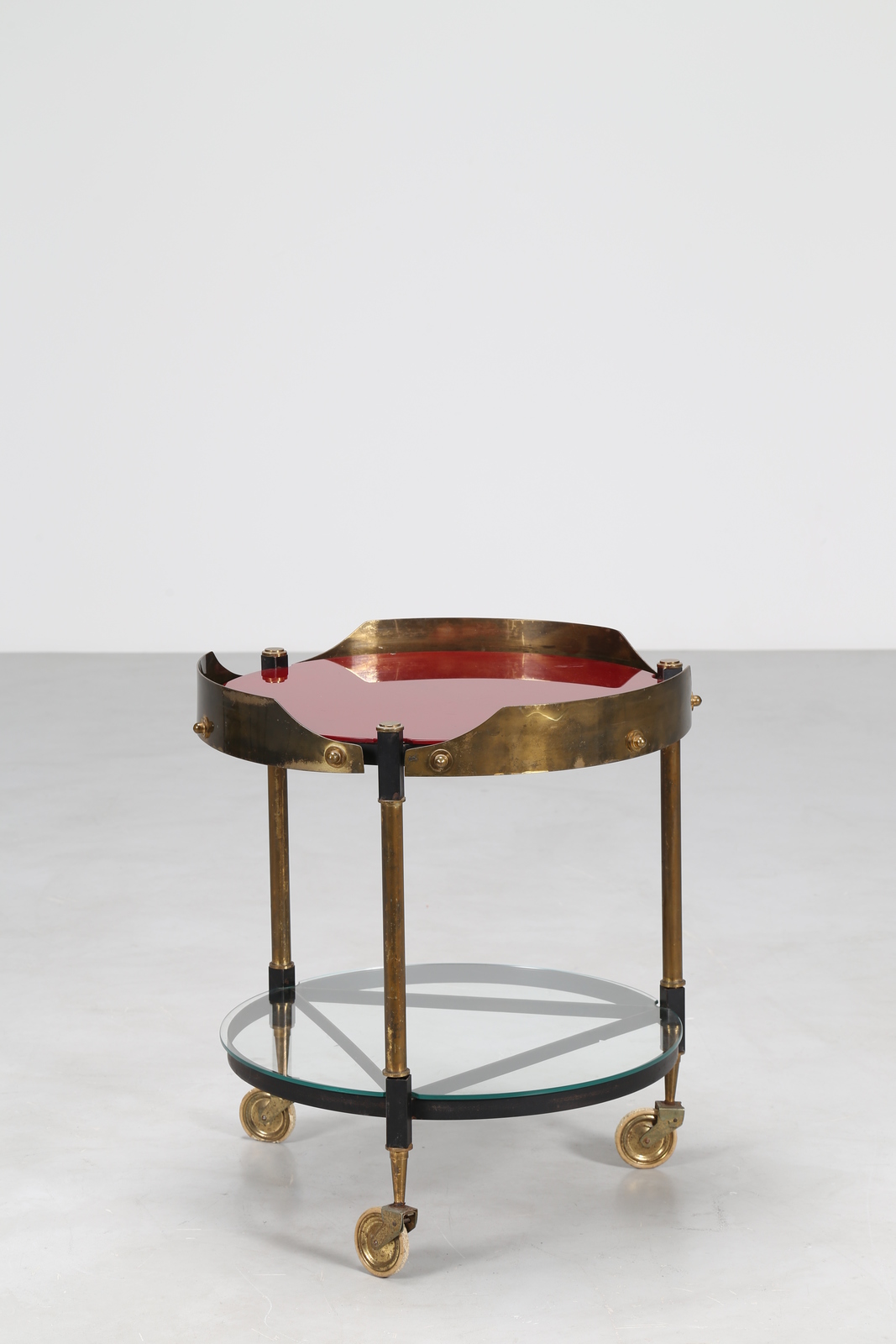 Lot 112 | MANIFATTURA ITALIANA Carrello tondo in ottone, metallo e vetro. -. Cm 66,00 x...