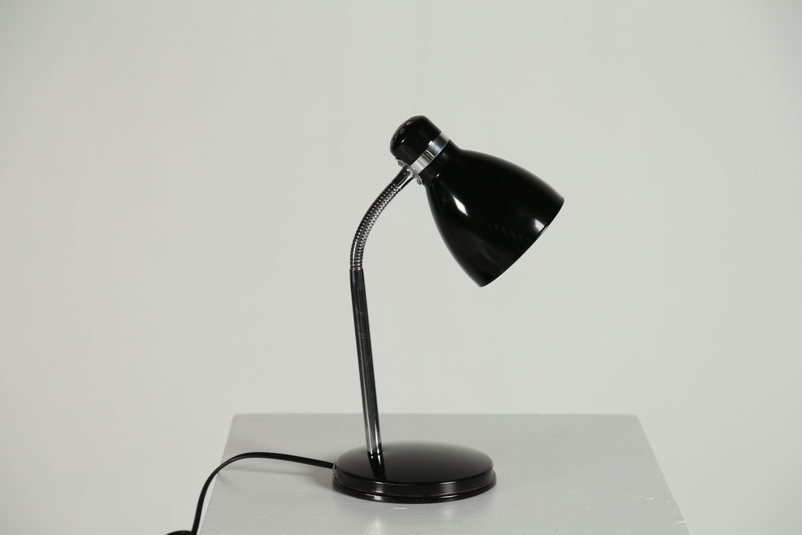 MANIFATTURA ITALIANA Lampada da tavolo in metallo cromato e laccato, anni 60. . Cm 14,50 x 37,00.