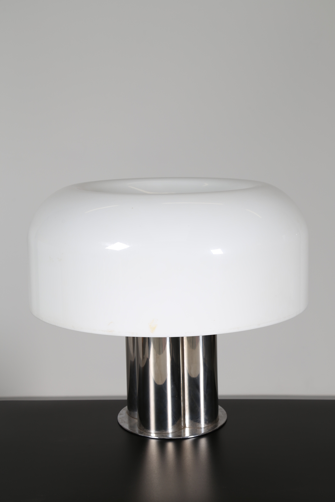 GUZZINI Grande lampada da tavolo in perspex e metallo cromato, anni 70°. -....