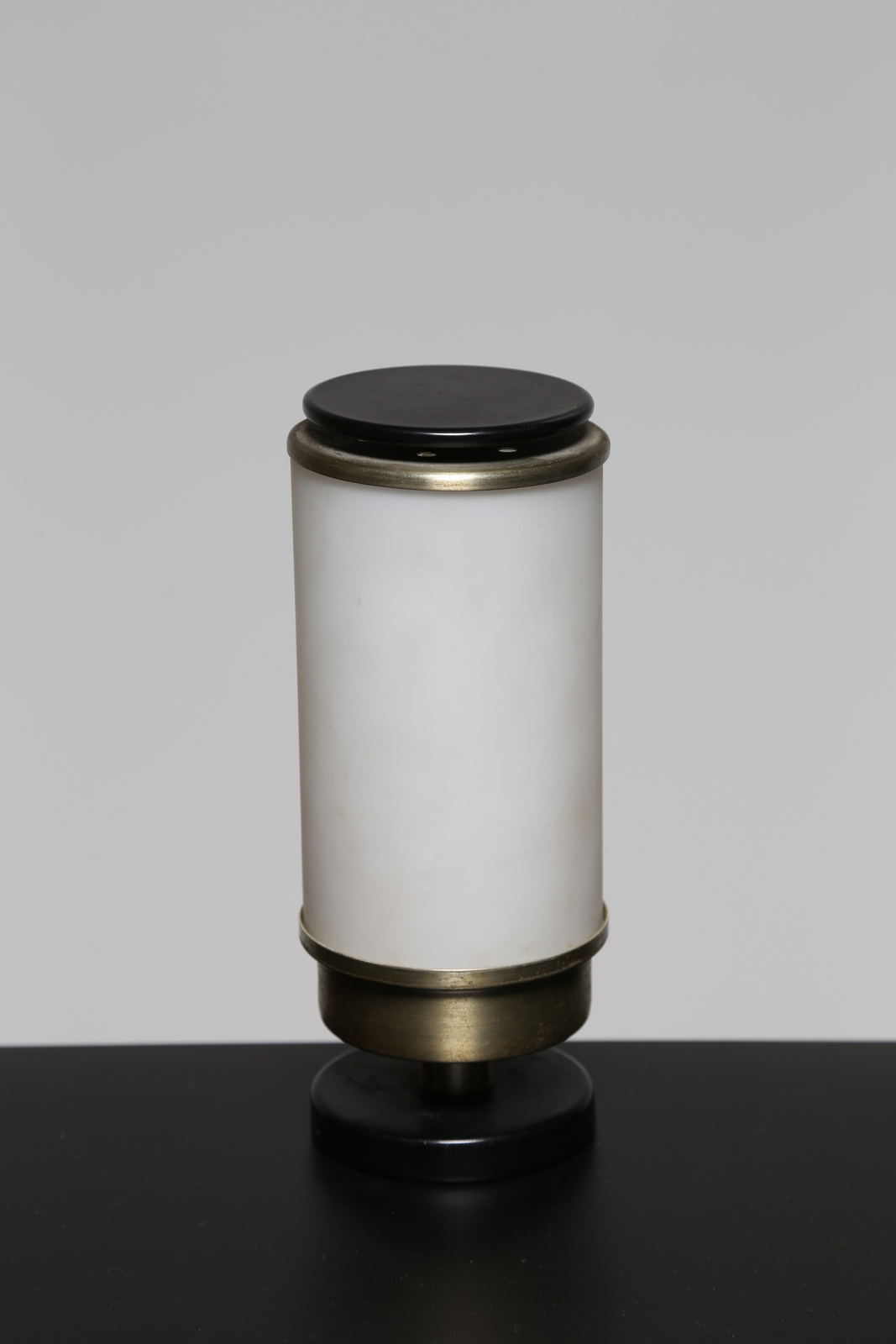 TORLASCO OSCAR Lampada da tavolo in metallo laccato ottone e vetro opalino, per Lumi, anni 50. . Cm 8,00 x 19,00 x 8,00.