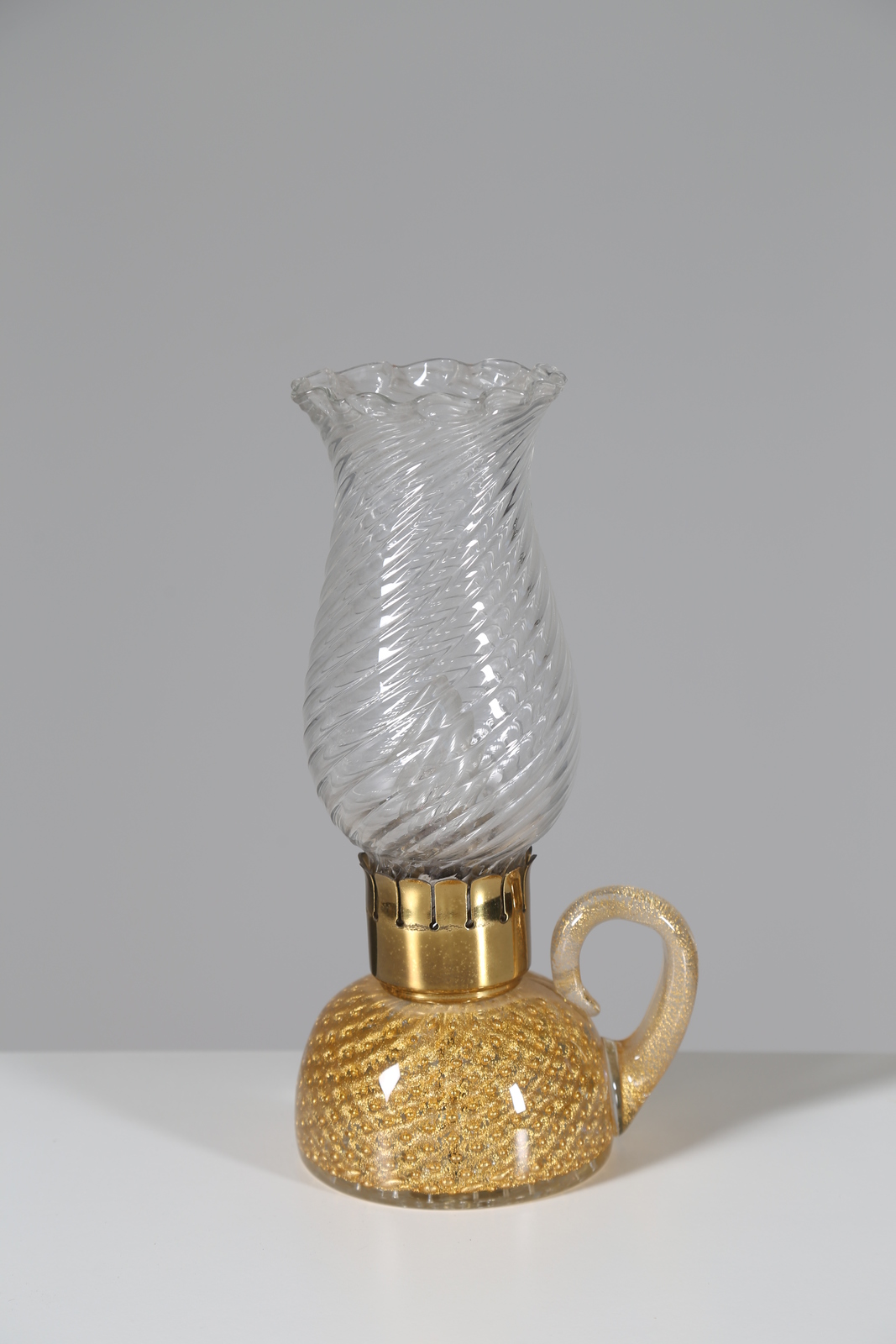 BAROVIER ERCOLE (1889 - 1974) Lampada da comodino in vetro e ottone, anni 40....