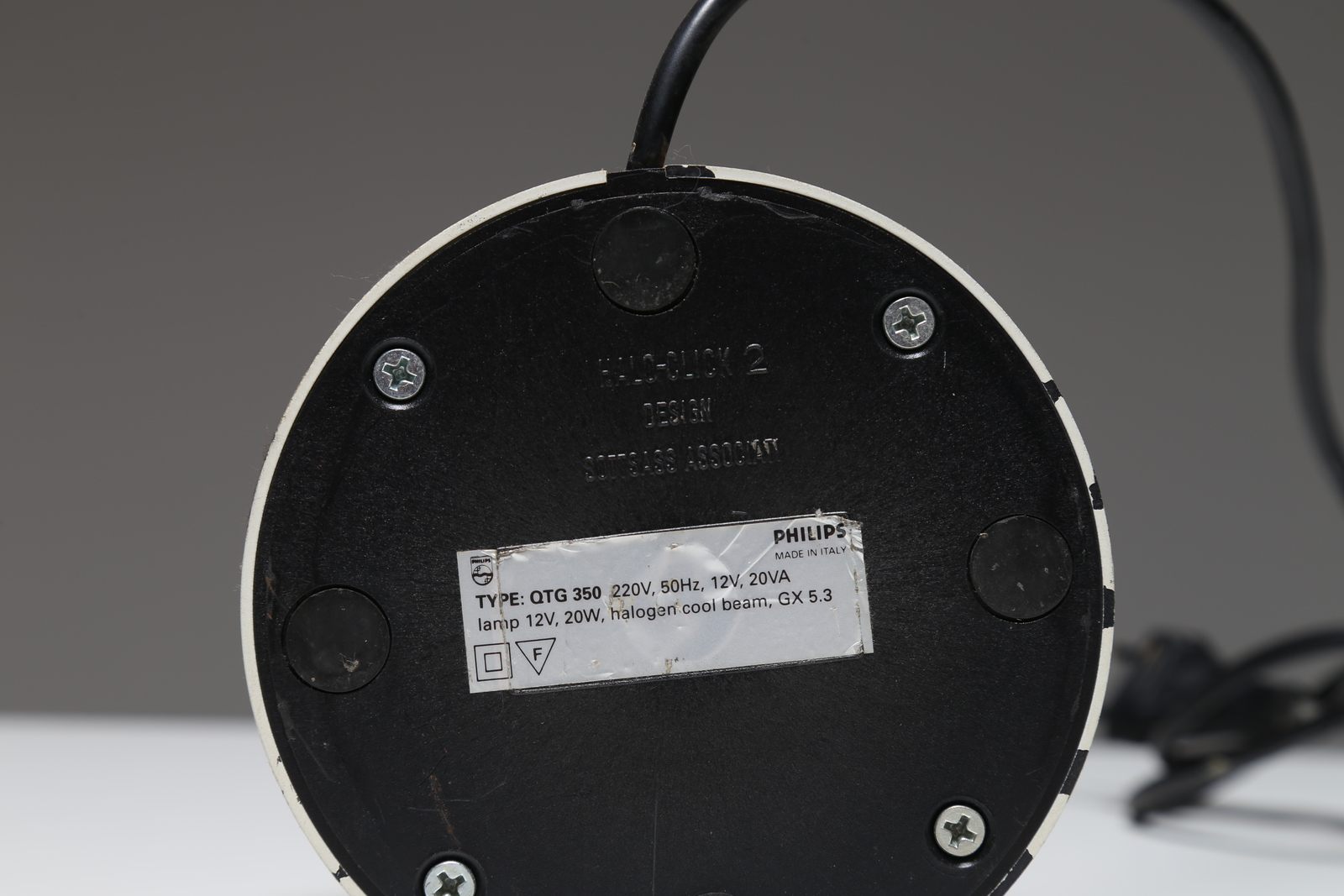 SOTTSASS ETTORE (1917 - 2007) Lampada da tavolo in metallo verniciato, mod. Halo Click 2, per Philips, anni 80 . -. Cm 35,00 x 49,00 x 12,00. etichetta presente