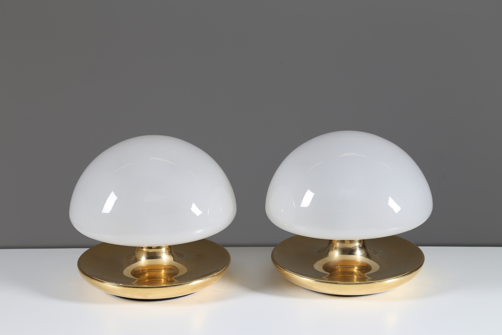 Lot 159 | SIRRAH Coppia di lampade da tavolo in metallo placcato oro e vetro, mod. VB,...
