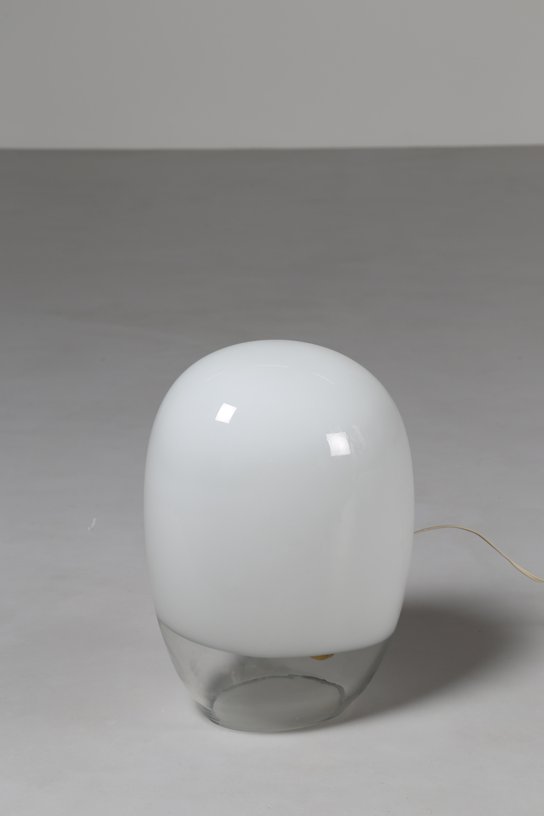 VISTOSI GINO (1925 - 1980) Lampada da tavolo in vetro bianco lavorato a mano...