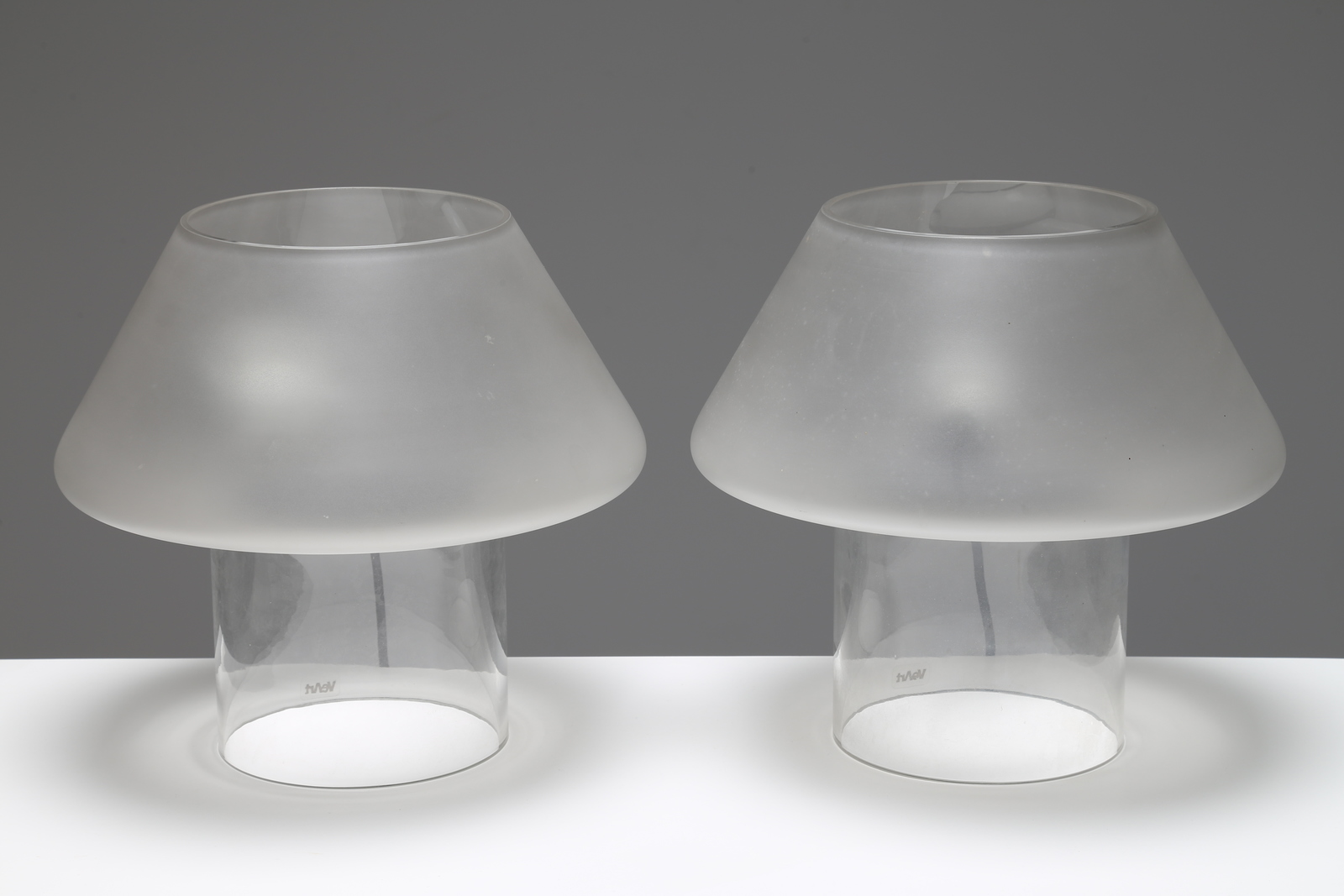 VEART Coppia lampade da tavolo in vetro sabbiato e trasparente, anni 80. -....