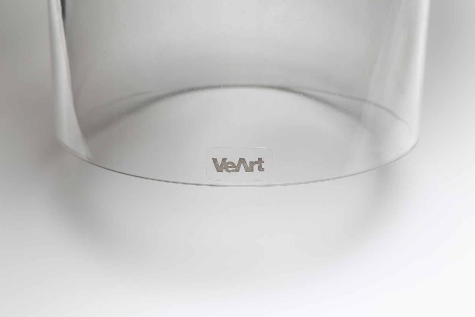 VEART Coppia lampade da tavolo in vetro sabbiato e trasparente, anni 80. -. Cm 31,00 x 28,50 x 31,00. Etichetta presente