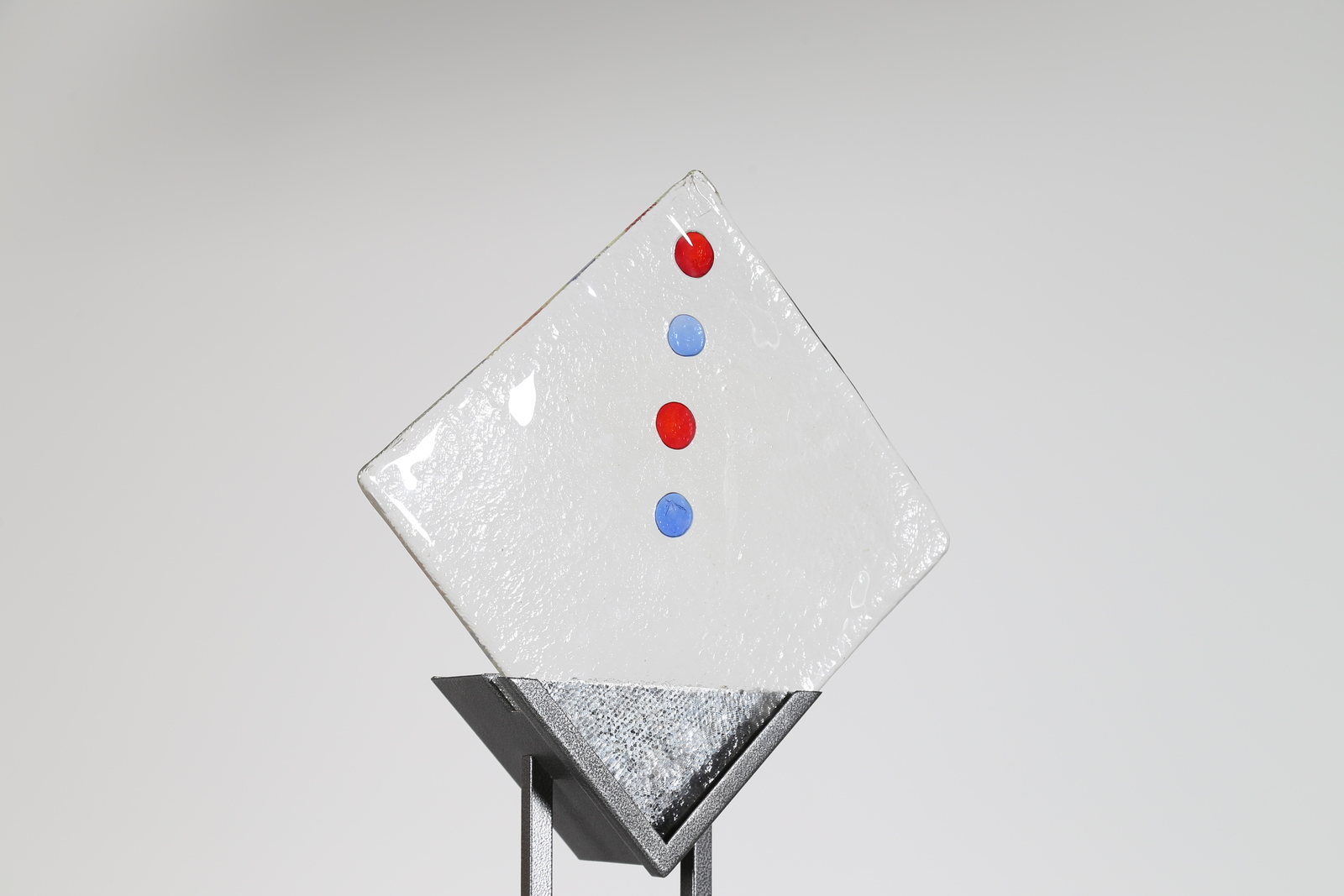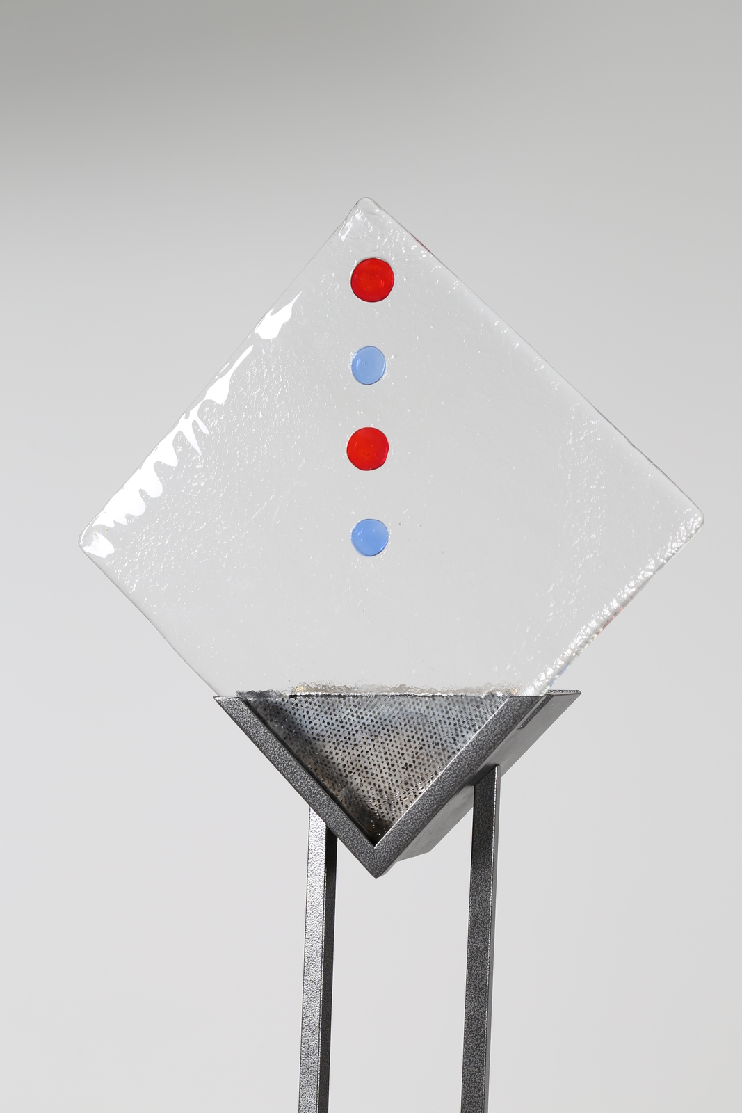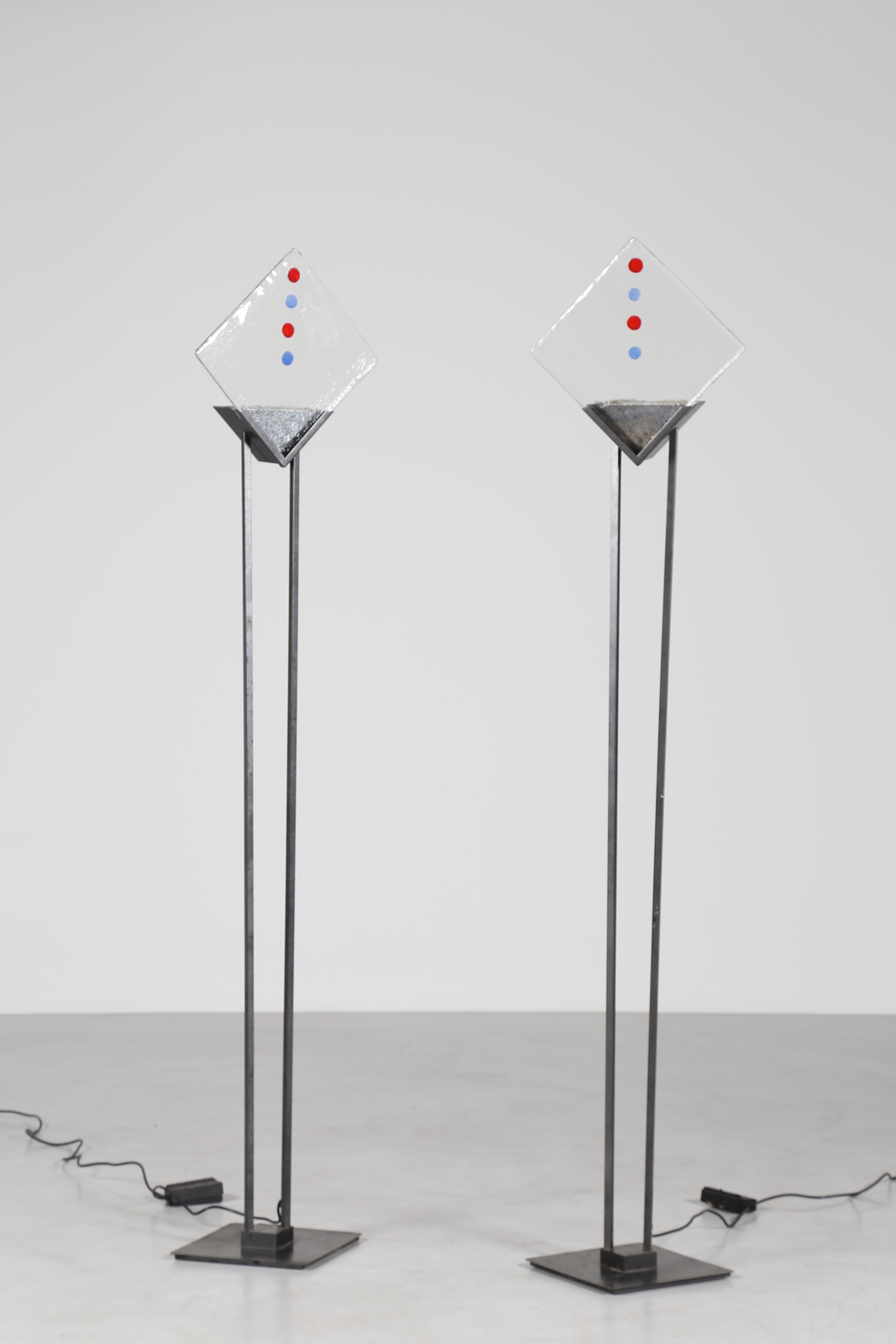 MANIFATTURA ITALIANA Coppia di lampade da terra in metallo e vetro, anni 70. -. Cm 42,00 x 203,00 x 42,00.