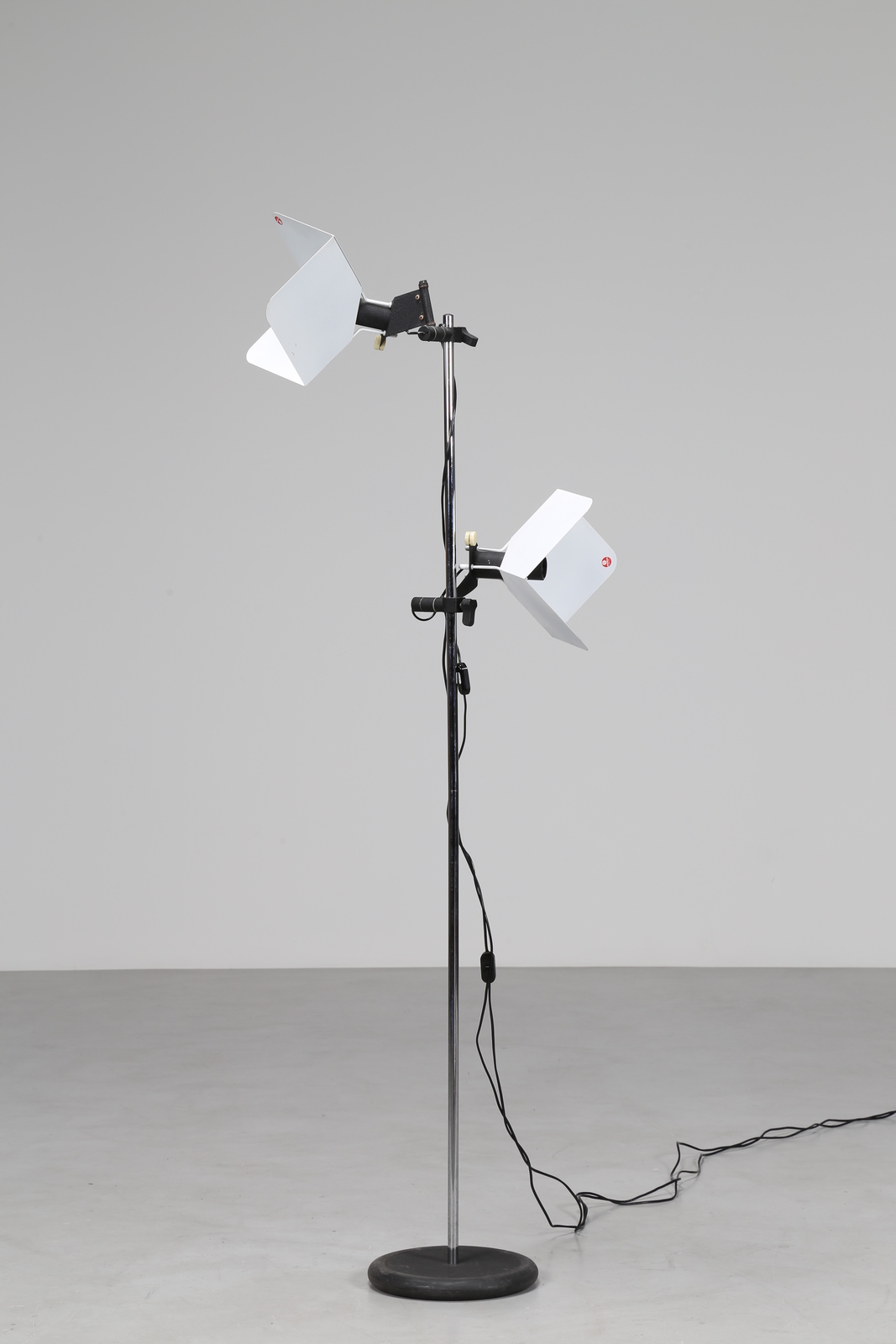 COLOMBO JOE (1930 - 1971) Lampada da terra in metallo laccato e cromato, mod. Triedro per Stilnovo, anni 70. -. Cm 65,00 x 180,00 x 65,00. Etichetta presente
