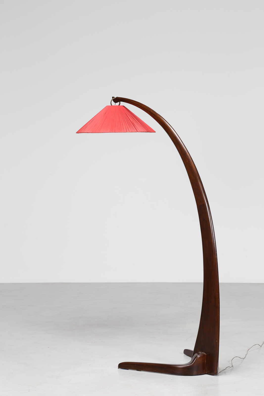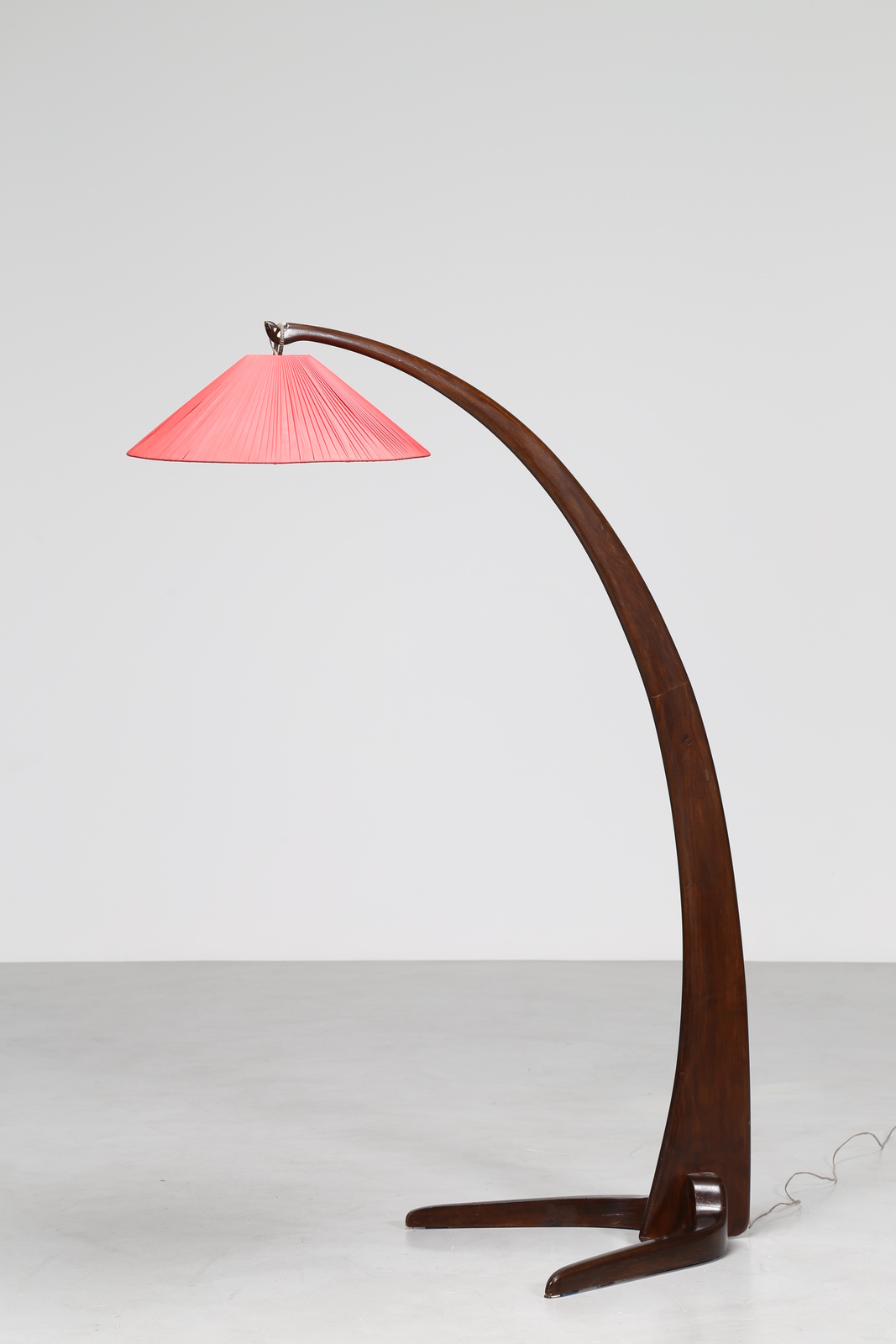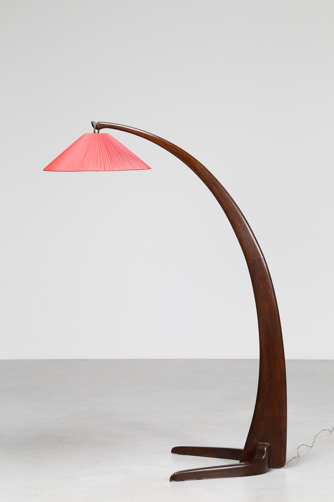 MANIFATTURA ITALIANA Lampada da terra in legno curvato, anni 70. -. Cm 112,00 x 160,00 x 58,00.