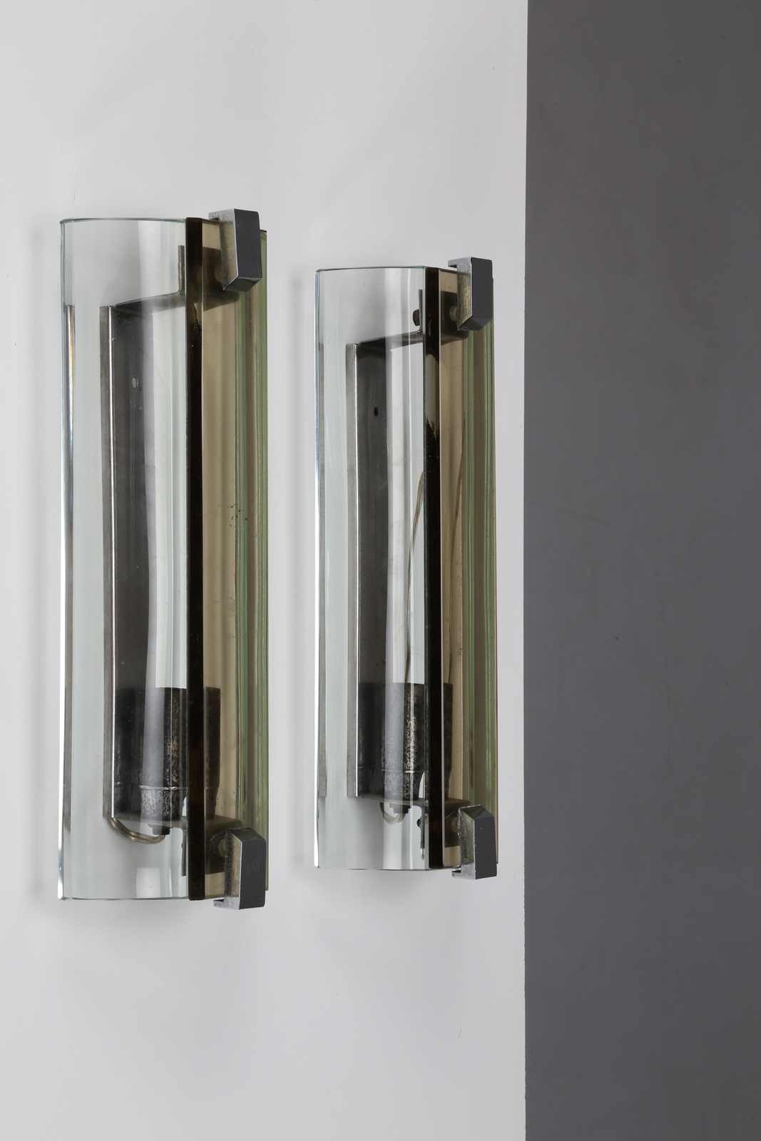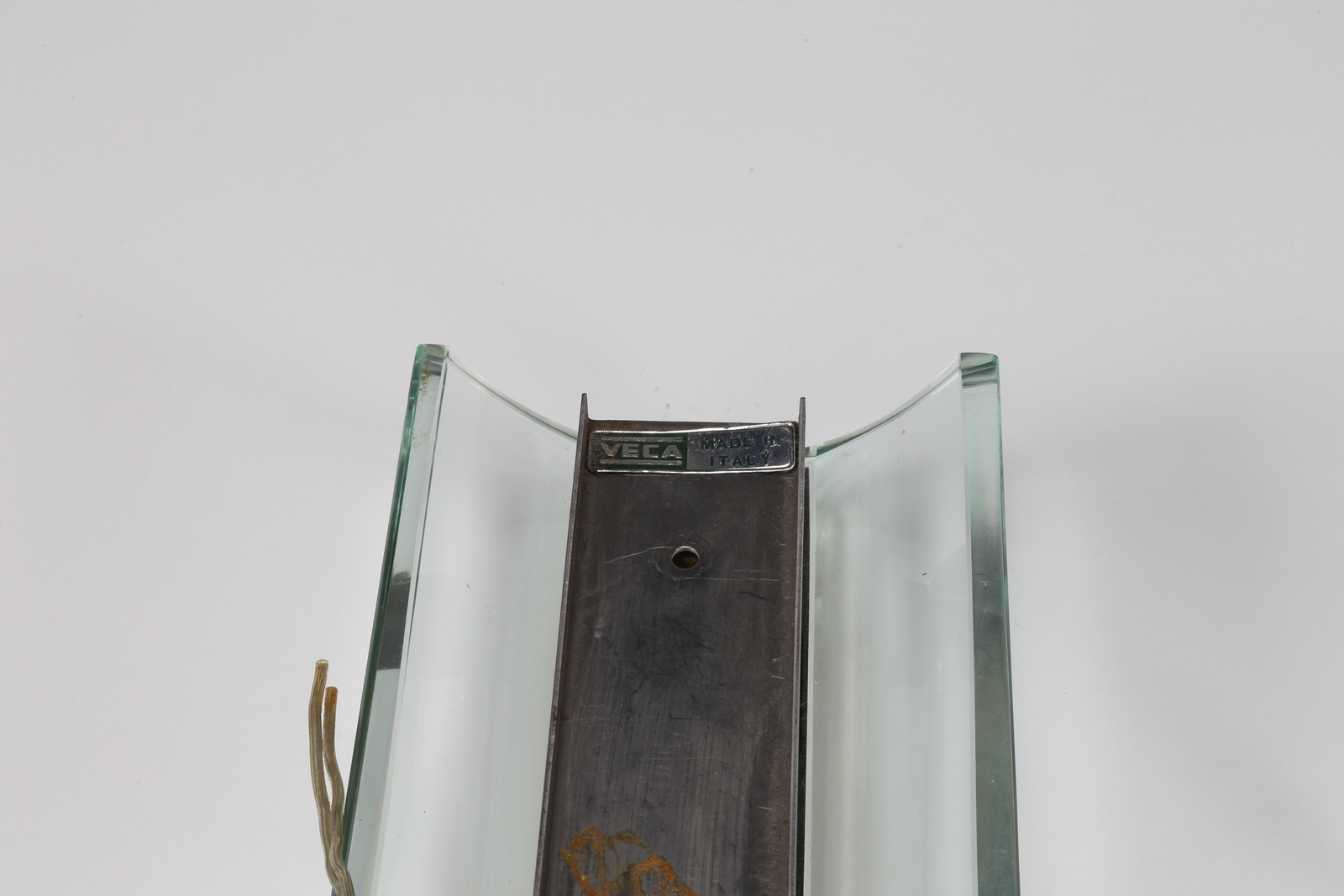 Lot 207 | VECA Coppia di appliques in acciaio cromato e cristallo, anni 60. -. Cm 11,00...