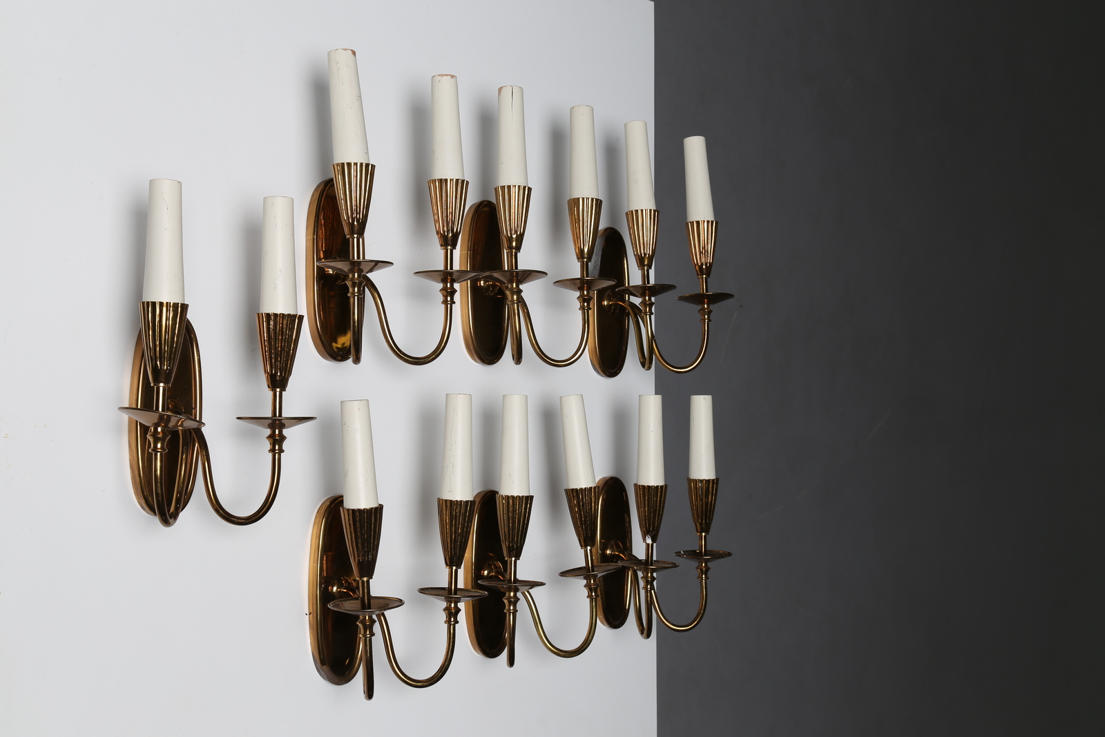 Lot 210 | MANIFATTURA ITALIANA Sette appliques in ottone e legno laccato, anni 40. . Cm...