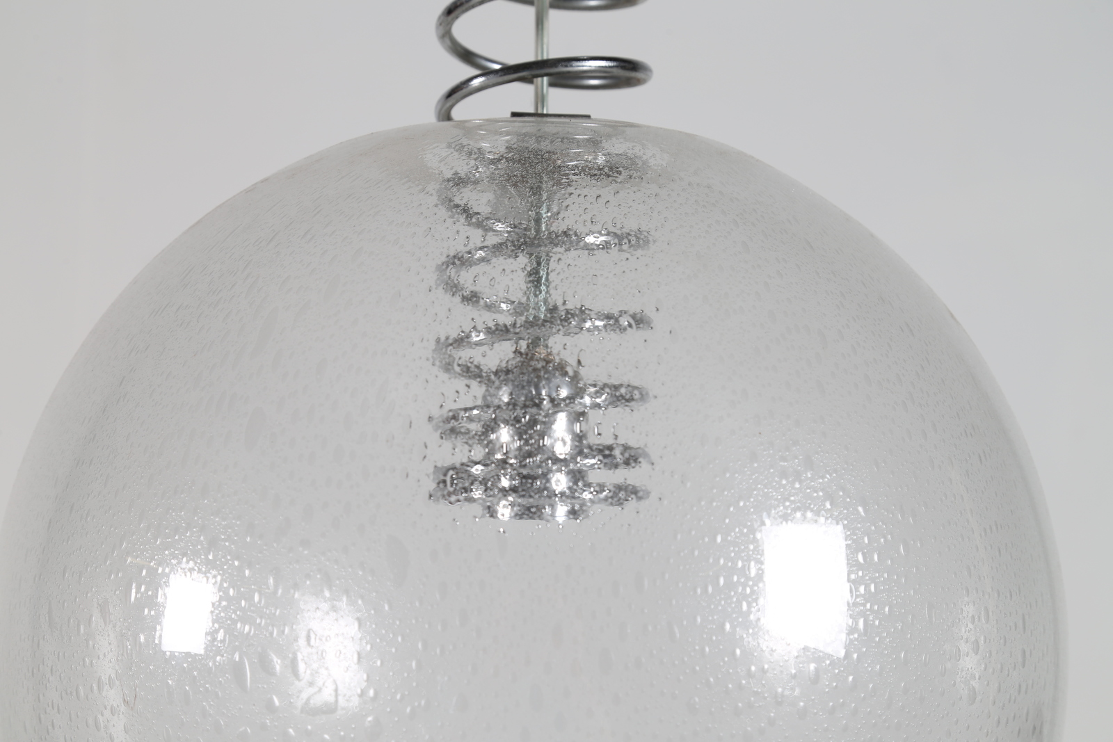 MANIFATTURA ITALIANA Lampada a sospensione in acciaio cromato e vetro, mod....