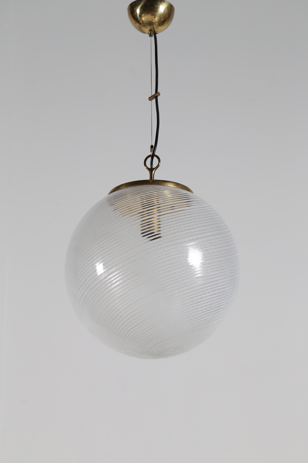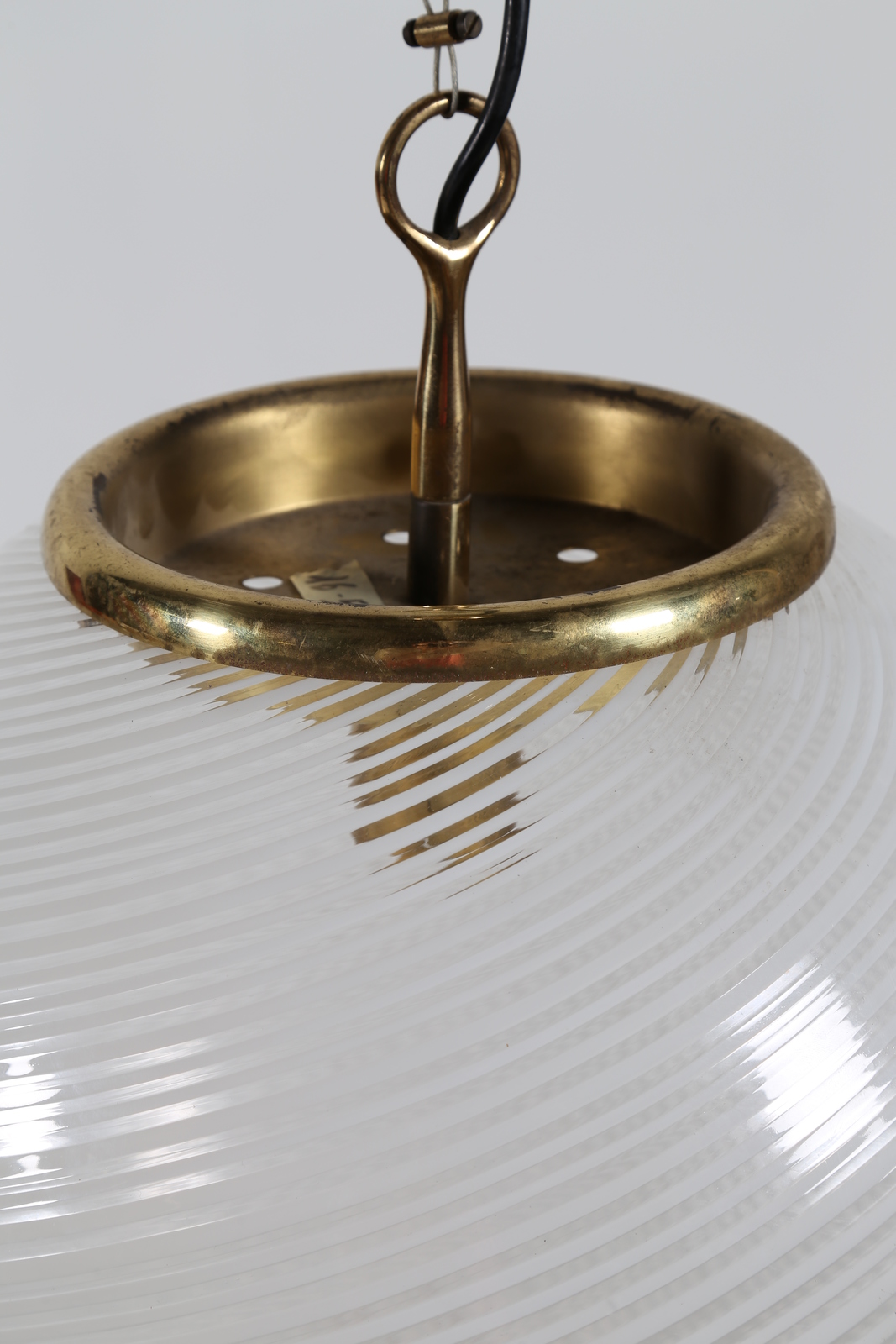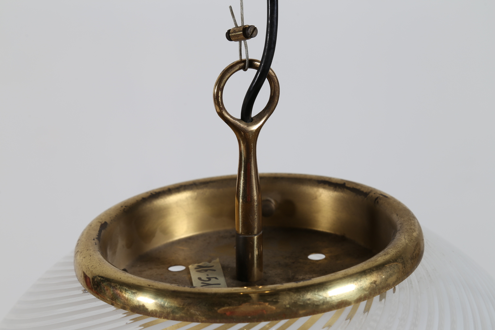 Lot 221 | VENINI Lampada a sospensione in vetro tessuto a canne e ottone, anni 60. -....