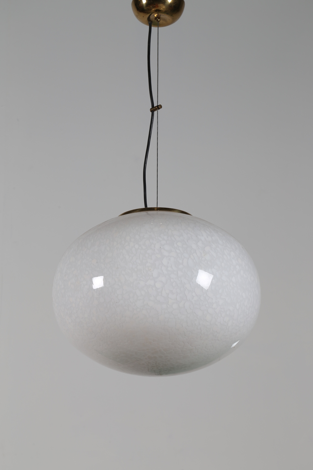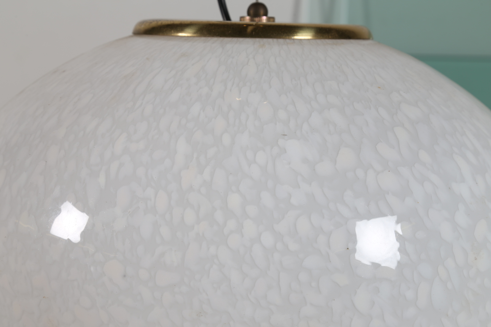 MANIFATTURA ITALIANA Lampada a sospensione in ottone e vetro macchiato in sommersione, anni 60. -. .
