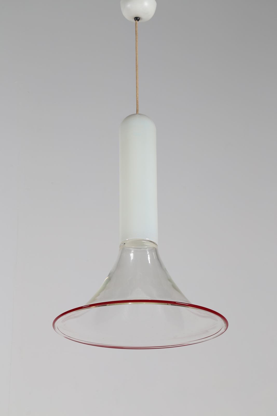 ROBERTO PAMIO e RENATO TOSO Lampada a sospensione in metallo laccato e vetro,...