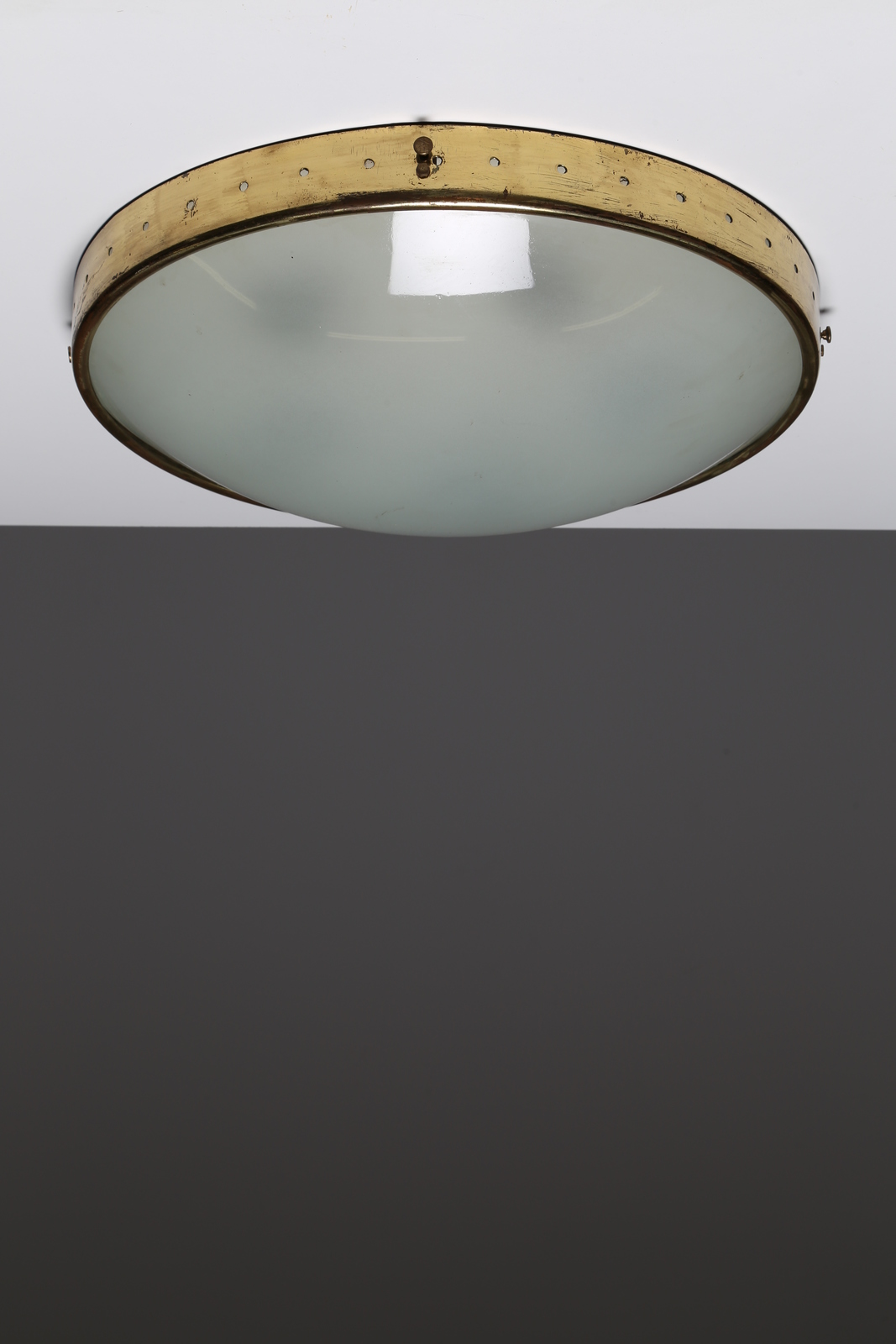 Lot 236 | MANIFATTURA ITALIANA Plafoniera in ottone e vetro opalino. anni 50. -. Cm...