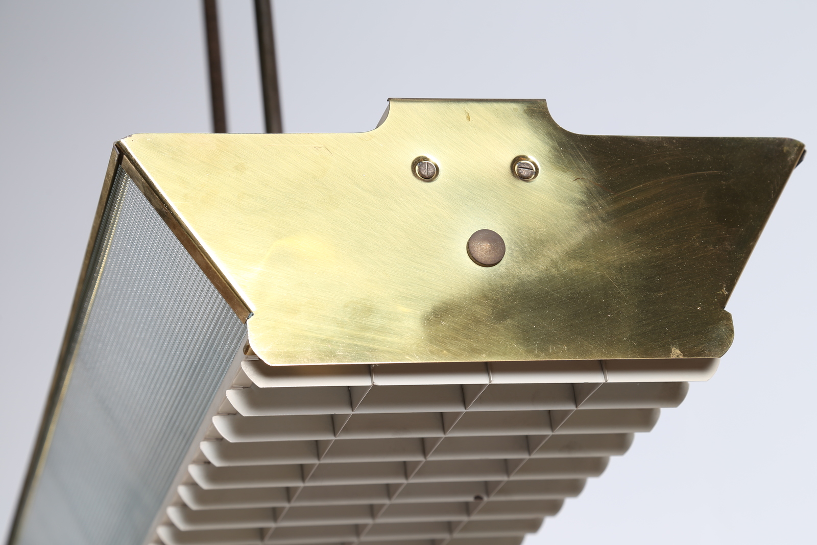 Lot 254 | MANIFATTURA ITALIANA Coppia di lampade a sospensione in alluminio, ottone e...