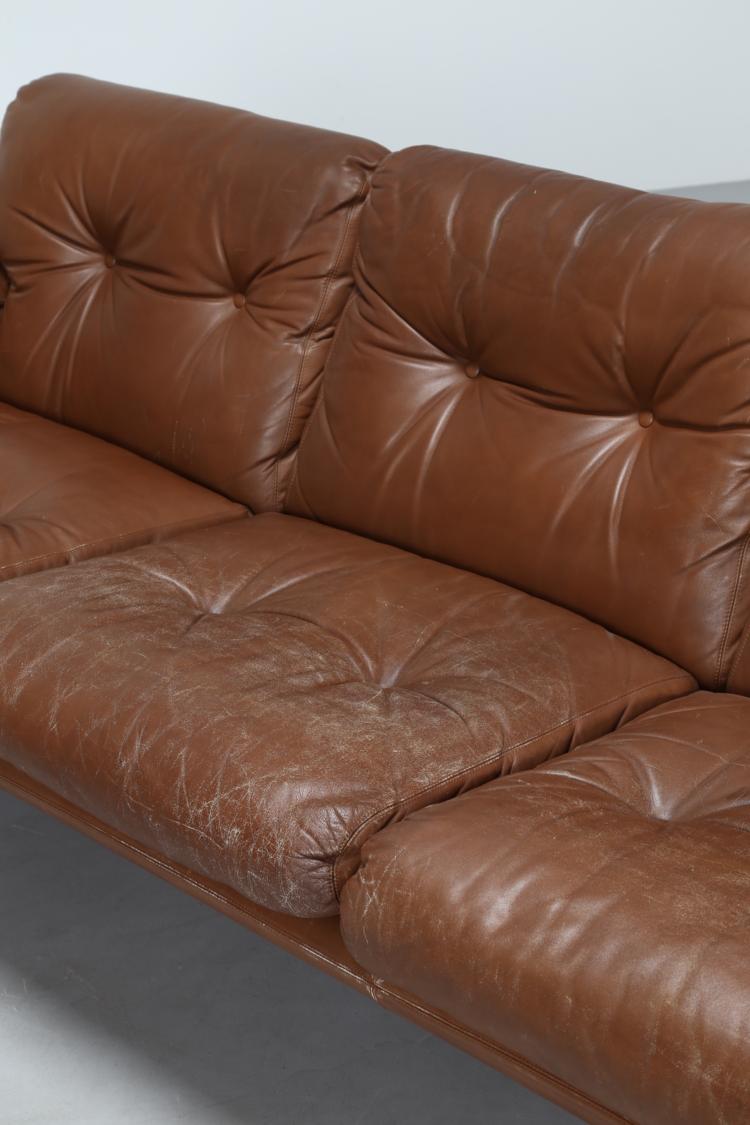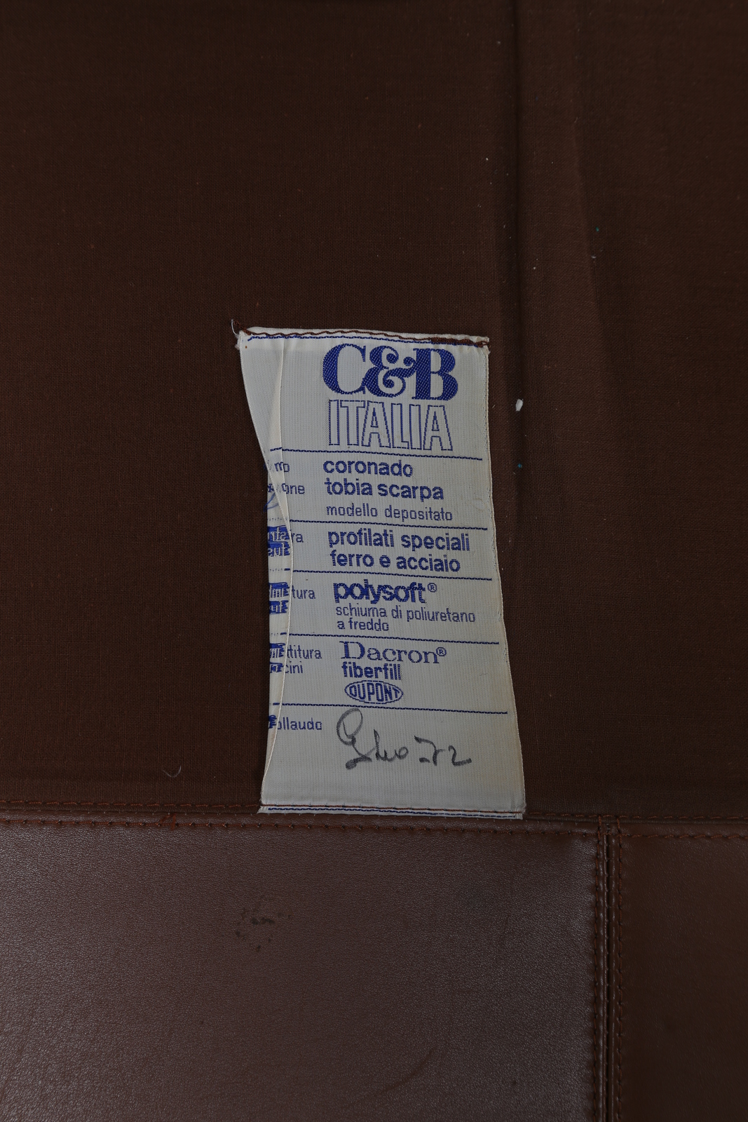 SCARPA TOBIA (n. 1935) Divano in legno con rivestimento in pelle, mod. Coronado Prod. B&B, Italia . Pelle. Cm 225,00 x 73,00 x 94,00. Etichetta presente